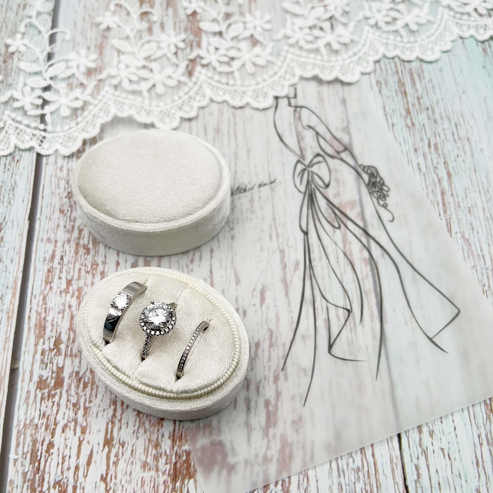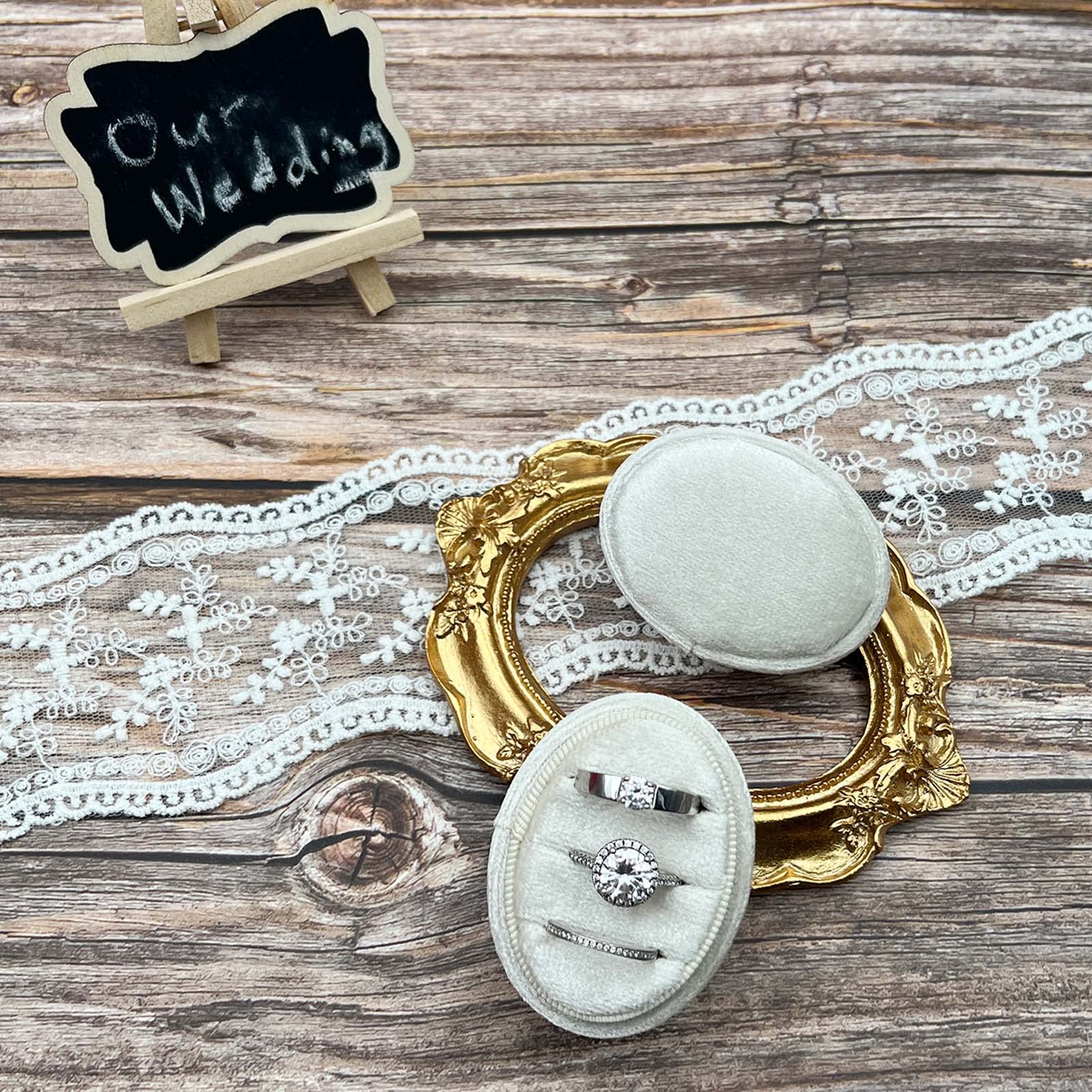 【Ring Box For Wedding Ceremony】 Standard oval art wedding ring box designed 3 slots for holding Mr and Mrs rings, highlight your rings at the center. (Fit for 1-3mm band rings, can't for too big rings, please kindly note.)