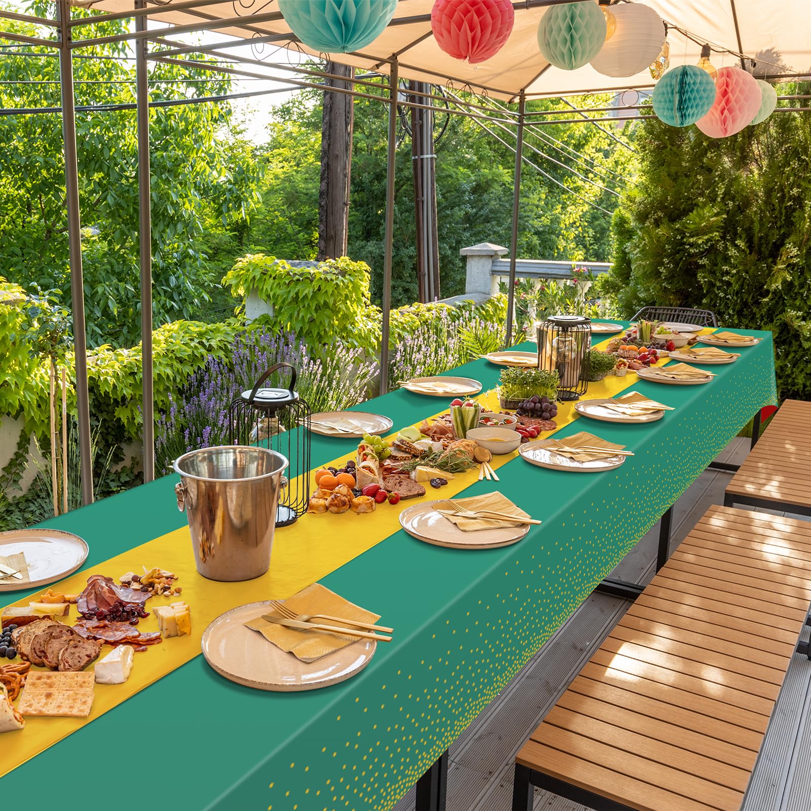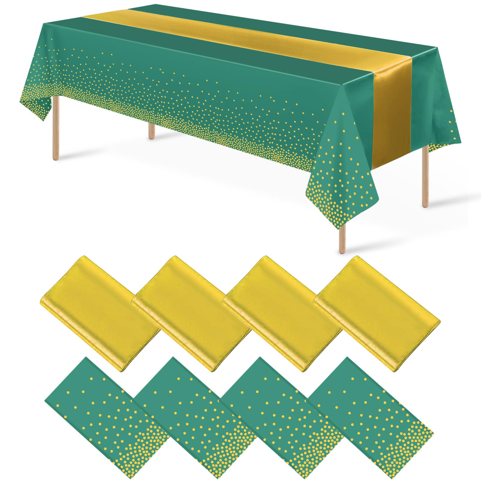What you will get: the package includes 4 pcs green and gold confetti dot plastic tablecloth and 4 pcs gold satin table runner, specific color as the picture shown, nice combination for you to use in daily life or important occasions enhancing the atmosphere for your event.