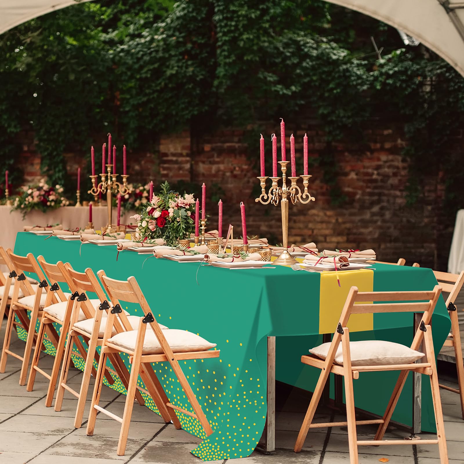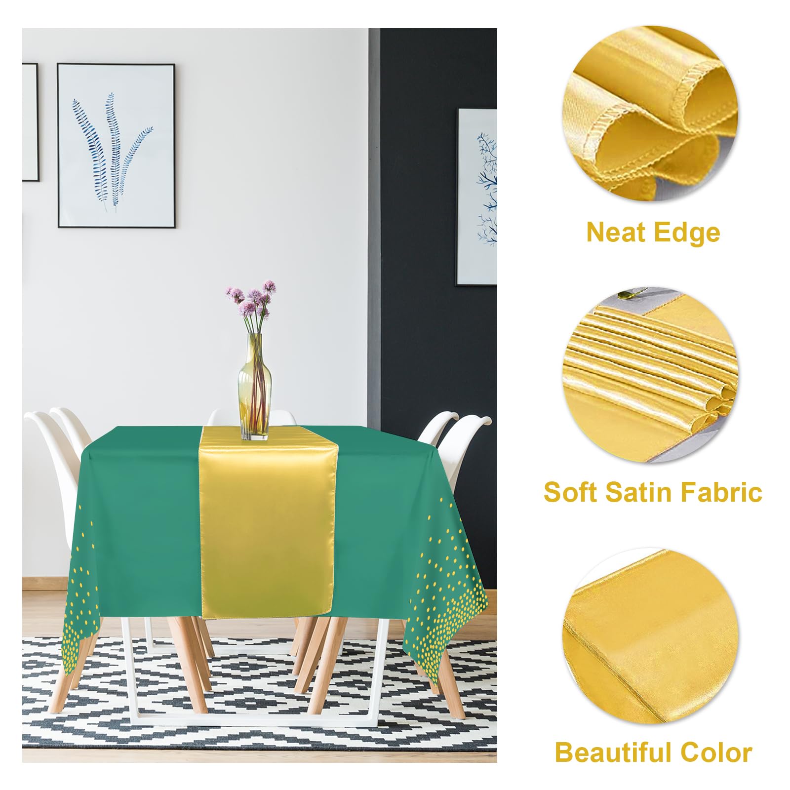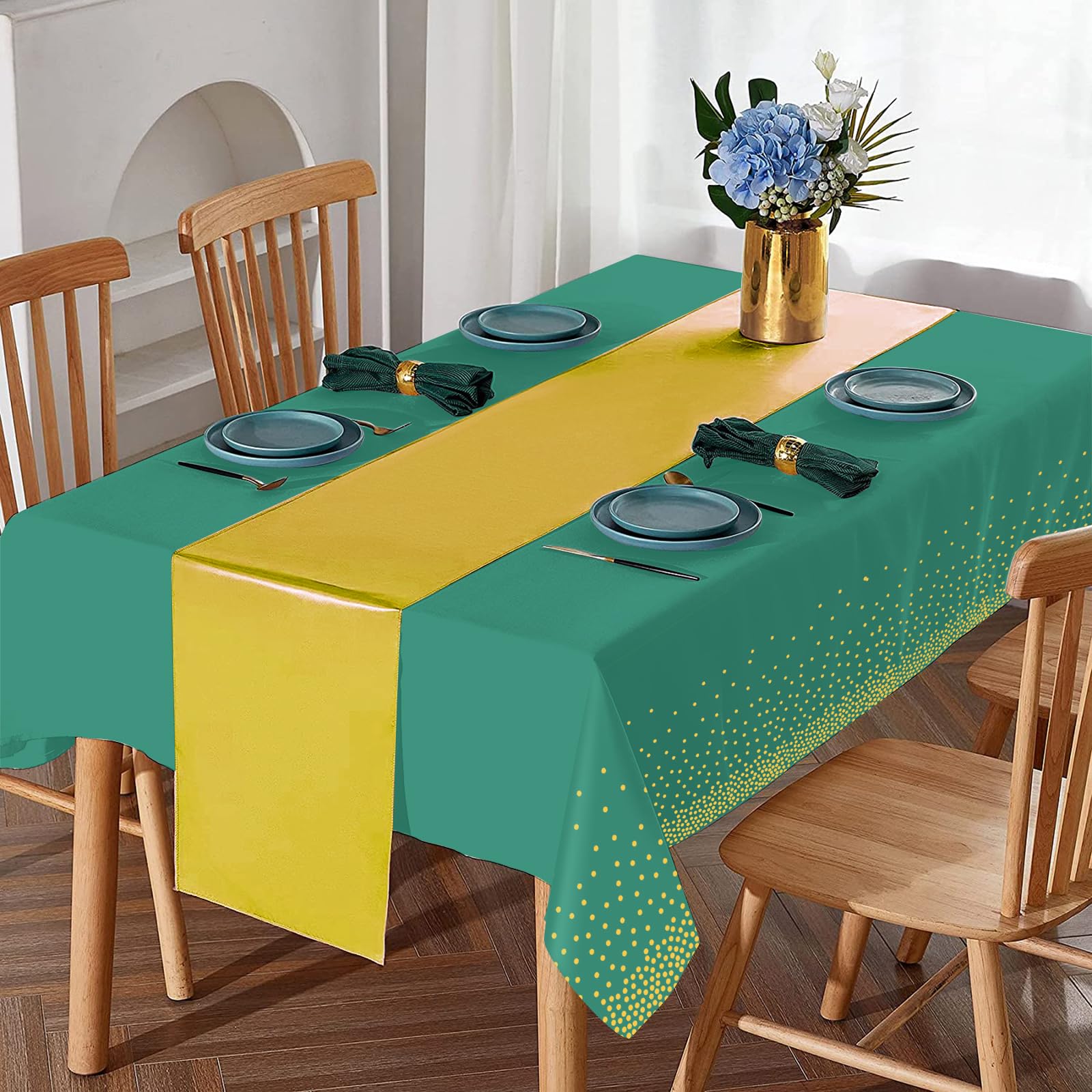 Classic design: the green gold rectangle table cloth is designed with the green colors background and printed with gold foil polka dot,the table runner is made of satin, silky and smooth, thick and durable, which is not easy to wrinkle or deform, which can add more charms to your dinner table