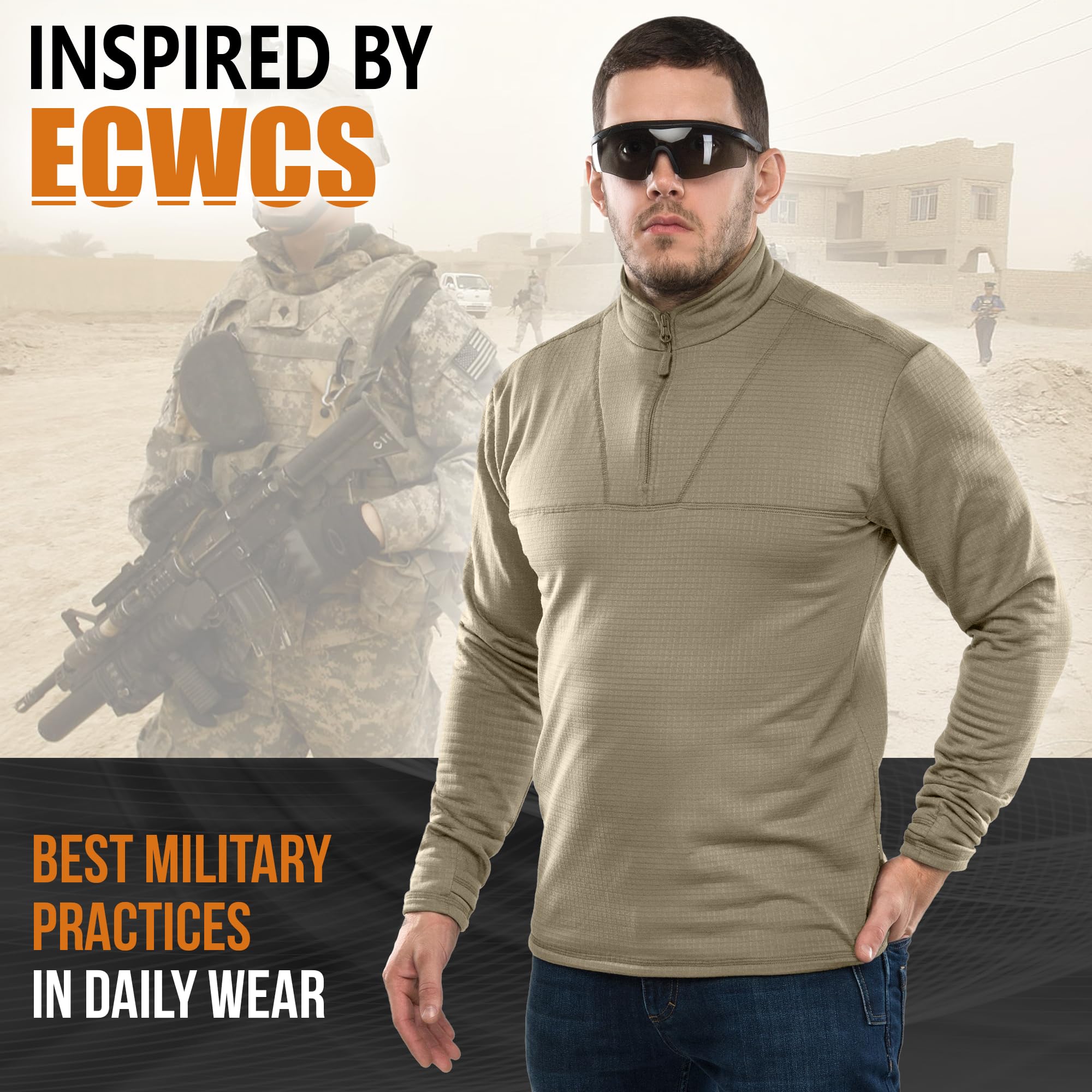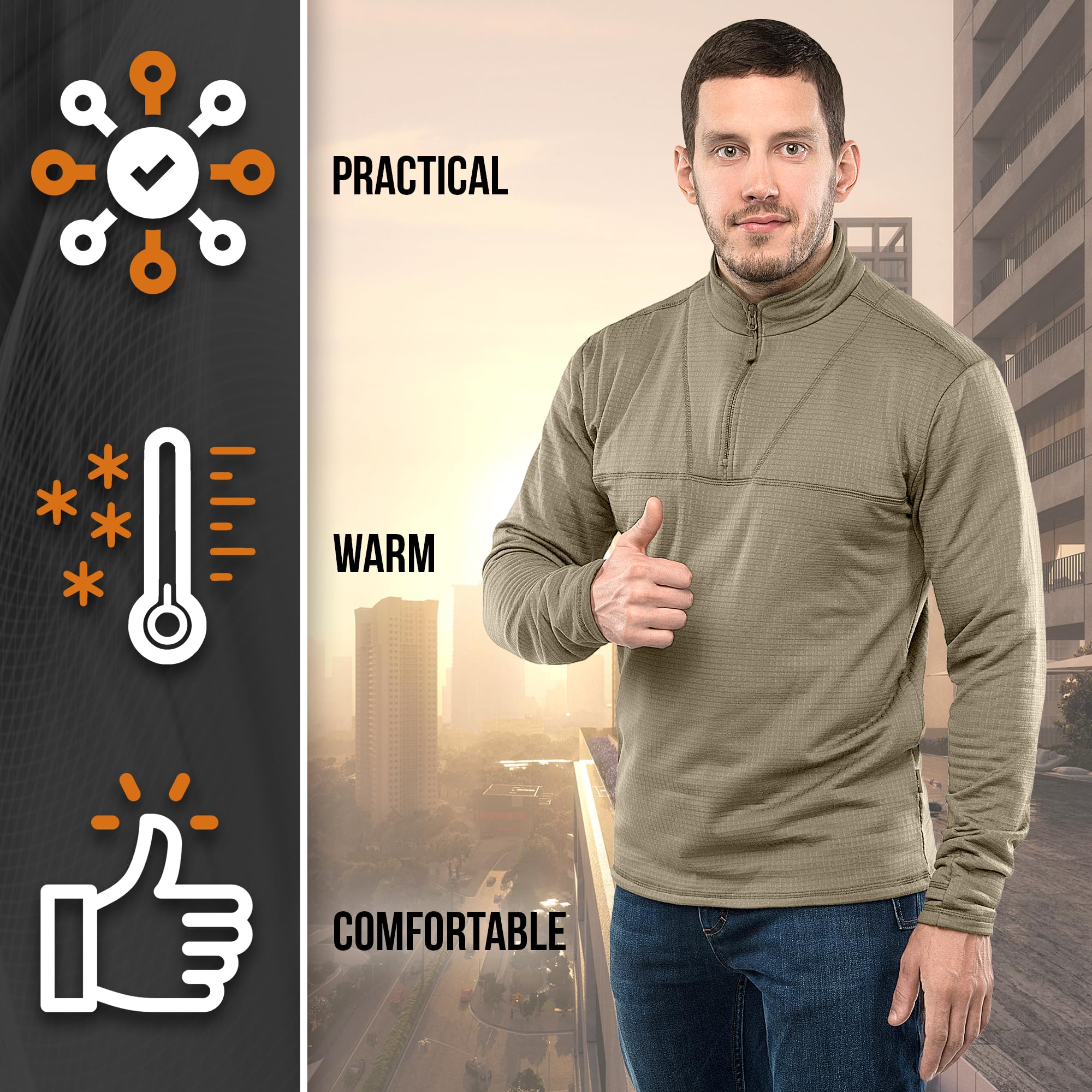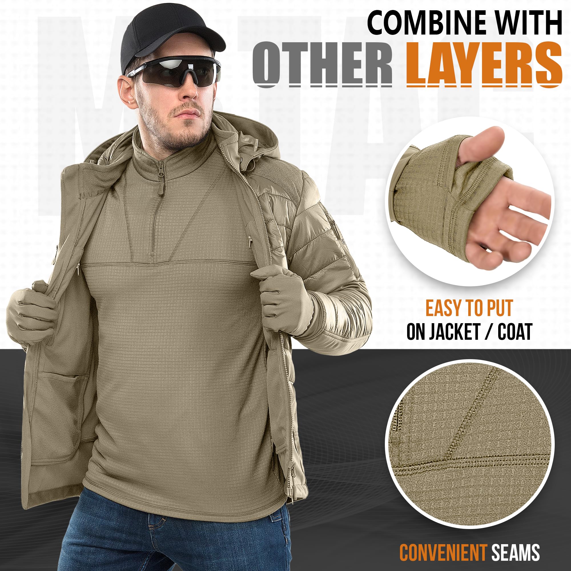 Functional Tactical Design – Built with performance features that matter: durable half-zip collar for ventilation, long sleeves with thumbholes for secure layering, and flatlock seams to prevent chafing during extended wear.