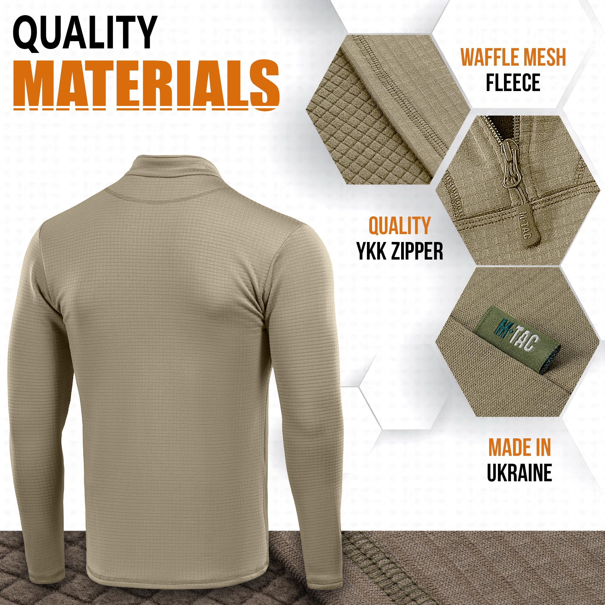 Description The M-Tac Delta Level 2 Thermal Top is engineered for those who refuse to slow down in cold weather. Designed as a tactical base layer for demanding conditions, this long sleeve thermal top provides reliable warmth and performance without restricting movement. Whether you’re on a mission, training, hiking, camping, hunting, or working outdoors, this waffle fleece shirt delivers dependable protection and all-day comfort. Made from advanced waffle-knit polyester fleece, this thermal top traps body heat while maintaining breathability, helping regulate temperature during high activity in cold environments. The moisture-wicking fabric pulls sweat away from the skin to keep you dry and prevent chills, making it an ideal choice for active use in harsh weather. The ergonomic athletic fit adapts to your movement and works perfectly as a first or second layer. Flatlock seams reduce friction and eliminate skin irritation during extended wear. A high collar with a quality zipper offers adjustable ventilation and wind protection, while thumbholes in the sleeves keep the shirt securely in place during layering and intense use. This tactical thermal top is part of the Delta Level 2 system and functions as a versatile cold weather gear essential. Whether worn under a uniform, jacket, or plate carrier, it maintains a lightweight feel while maximizing thermal efficiency. The minimalist design delivers silent performance with no unnecessary bulk, keeping you mission-ready in any environment. Ideal for military, law enforcement, security, survival training, and outdoor sports, this fleece-lined combat shirt is built for endurance and reliability. Its rugged construction and functional design make it an essential piece of gear for anyone facing cold-weather operations or demanding outdoor conditions. Care Instructions: Machine wash cold with similar colors. Do not bleach. Do not tumble dry. Line dry only to maintain fabric properties. Do not iron. Stay warm. Stay prepared. Stay unstoppable with the M-Tac Delta Level 2 Thermal Top.