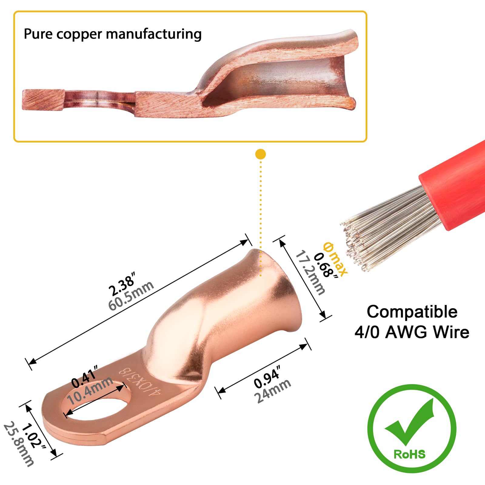 ☆『Wide Applications :』These Copper Lugs are safe and reliable, great for distribution box, marine, golf carts, solar panels, home applications, etc.Heat Shrink Tubing is Ideal Used for Vehicle, Motorcycle, Boat, DIY Electrical Wirings and Other Outdoor Applications.