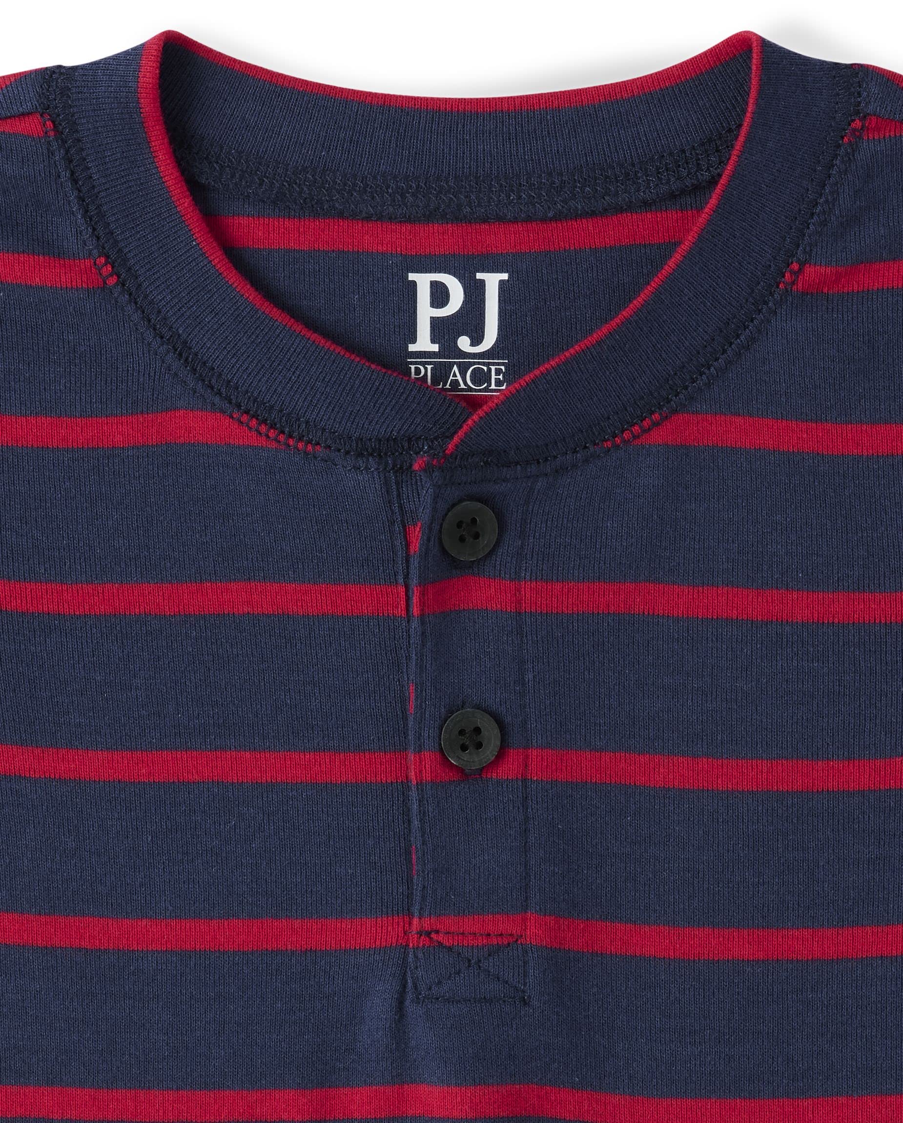 PAJAMA TOP — Features half-button placket, long sleeves, rib-knit crew neck and sleeve cuffs and allover stripes