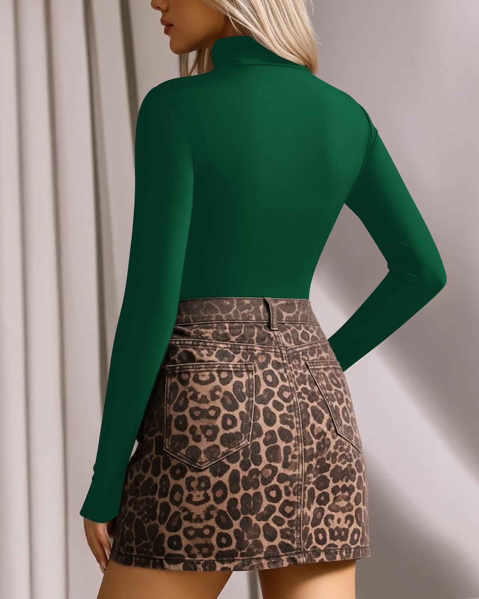 Versatile Style: Women's mock neck bodysuit is comfortable and versatile, easily paired with pants, shorts, or skirts to enhance your look. It features two snap buttons at the bottom for convenient wear.