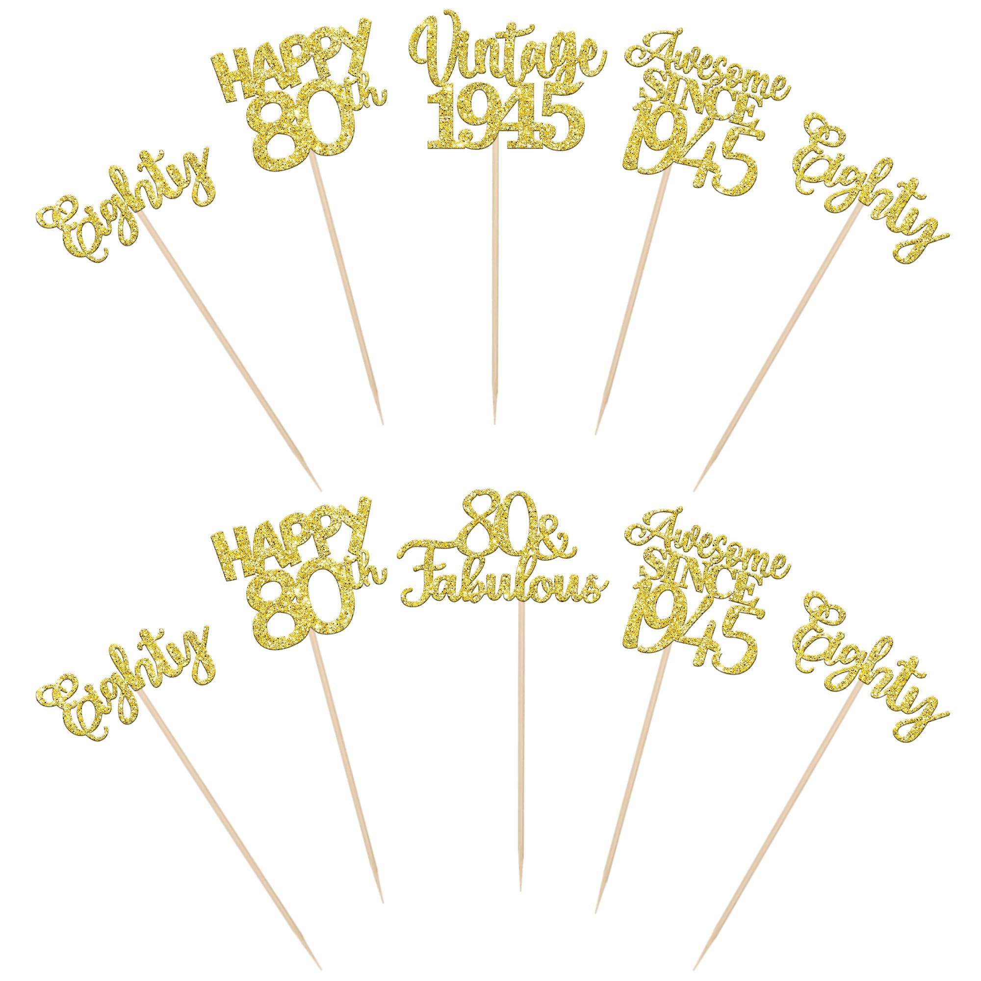 15 PCS 80th Birthday Centerpiece Sticks Double Sided Glitter Eighty Happy 80th Vintage 1945 Table Flower Centerpieces Sticks Cheers to 80 Fabulous Floral Decorations for 80th Birthday Party Supplies Gold Perfect for happy 80th bithday theme party, vintage 1945 theme party,80th anniversary theme party,cheers to 80 years theme party centerpieces floral decorations supplies. Pack of 12 pcs,6 pcs of each design. The size is 4.6*10.4/ 5.4*8.5/ 4.3*9.8/ 5.2*11/ 4.5*9.6 inch ( with stick ) Made of high quality double-sided glitter paper card stock ,thick and sturdy. These happy 80th Birthday centerpiece sticks are double-sided glitter, and they are inEightyded for decoration only, please do not put them in oven or microwave. If the item you received has any defects, please contact us immediately.we will deal with it within 24 hours.