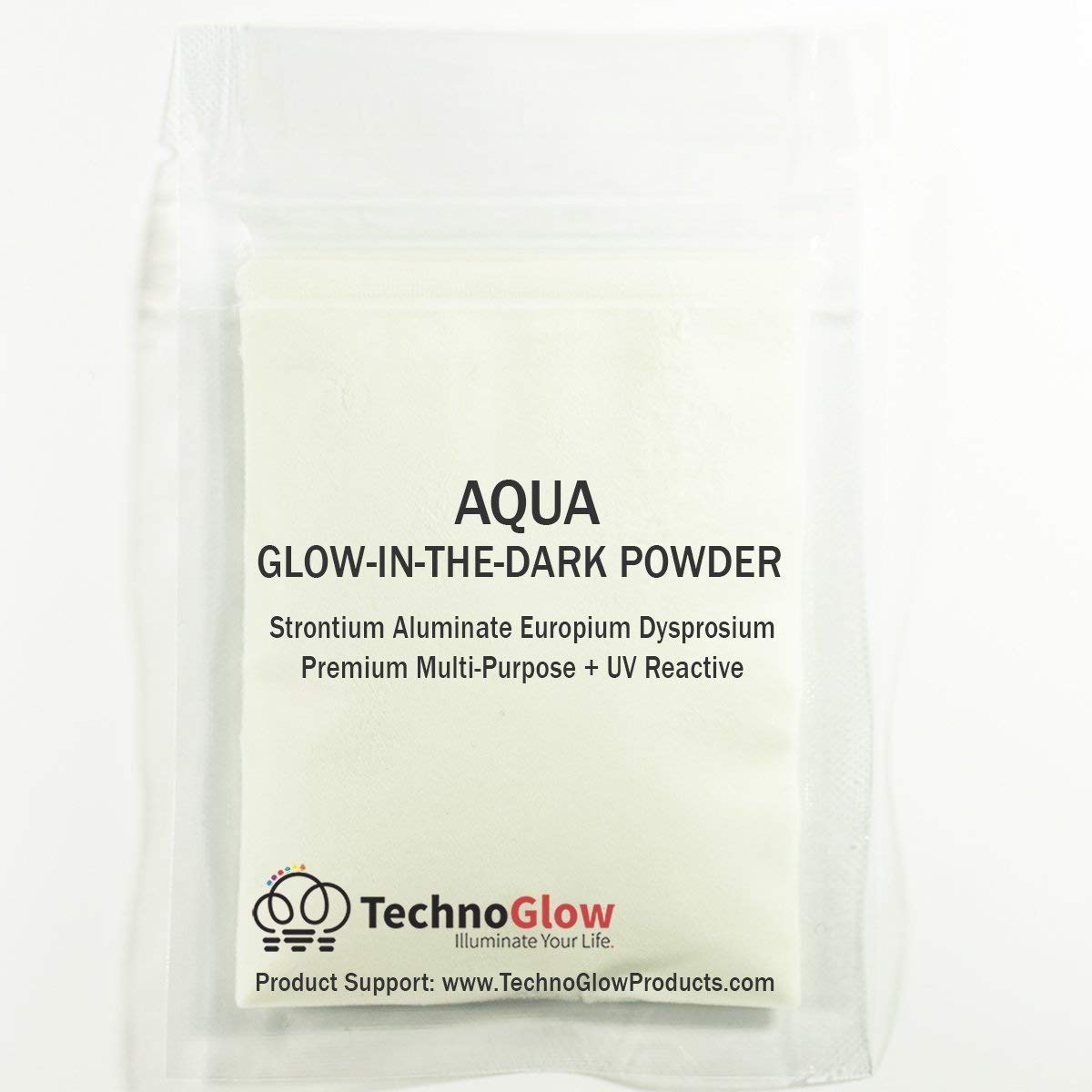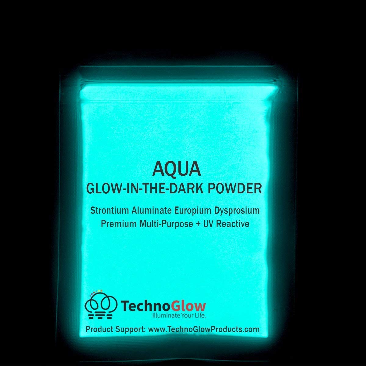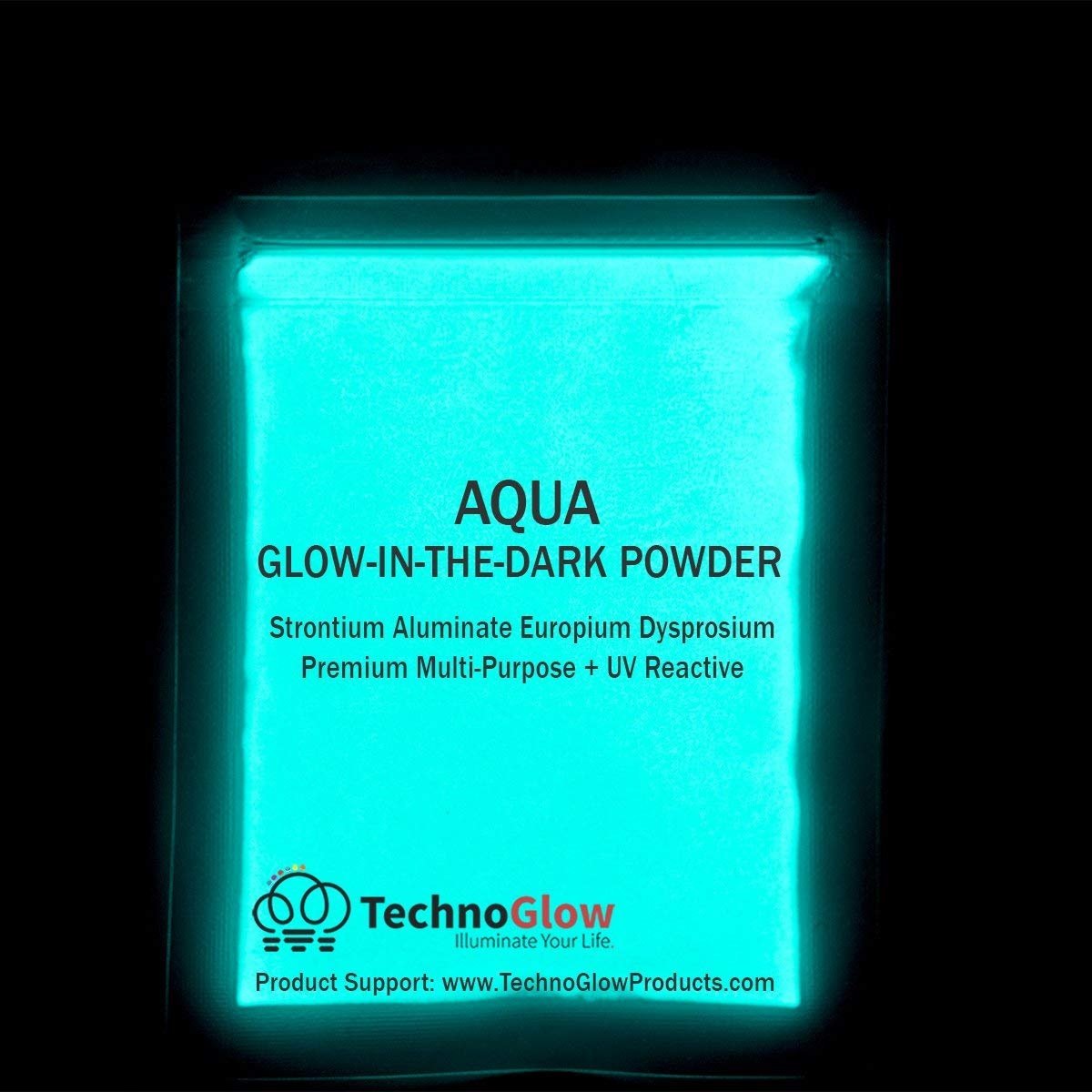 Glow In The Dark Powder Pigment | The PRO-Series by Techno Glow NaturalColors Also called invisible or neutral is 100% pure made from rare earth minerals and can handle temperatures of about 1100°F or 600°C. Green is the number 1 choice, followed by Aqua and Blue. These charge the fastest, glows the longest and brightest. The natural green is so powerful that the human eye can still see it glow in a pitch-dark room after 24 hours. Aqua and Blue glows for up to 12 hours. Very good colors for using outdoors. Purple is one of our most popular colors and glows for up to 6 hours. It is a lot harder to charge, but direct sunlight or uv light will get the job done faster. Natural Orange and red all glows for under 1 hour and are much more expensive. Fluorescent Colors Tinted (dyed) for a vibrant color in normal daylight. Free of formaldehyde, making it the safest daytime phosphorescent pigment on the market. Most of these glow between 4-8 hours. Some fading might occur outdoors. Other Red zinc is a deep red, charges very fast and glows under 1 hour. Very strong sulfur odor. Mixing Ratios We recommend mix ratios between 15% to 33% glow powder. In general, ratios with more than 33% powder to the mix don’t achieve a more drastically bright glow to justify the cost of more glow powder. Testing various ratios are recommended for commercial and manufacturing purposes. 20% = 1:5 = 1 ounce powder to 5 fluid ounces clear medium 25% = 1:4 = 1 ounce powder to 4 fluid ounces clear medium 33% = 1:3 = 30 grams powder to 90 milliliters clear medium More detailed information provided in the bullets above. Scroll up and grab some glow in the dark powder today!