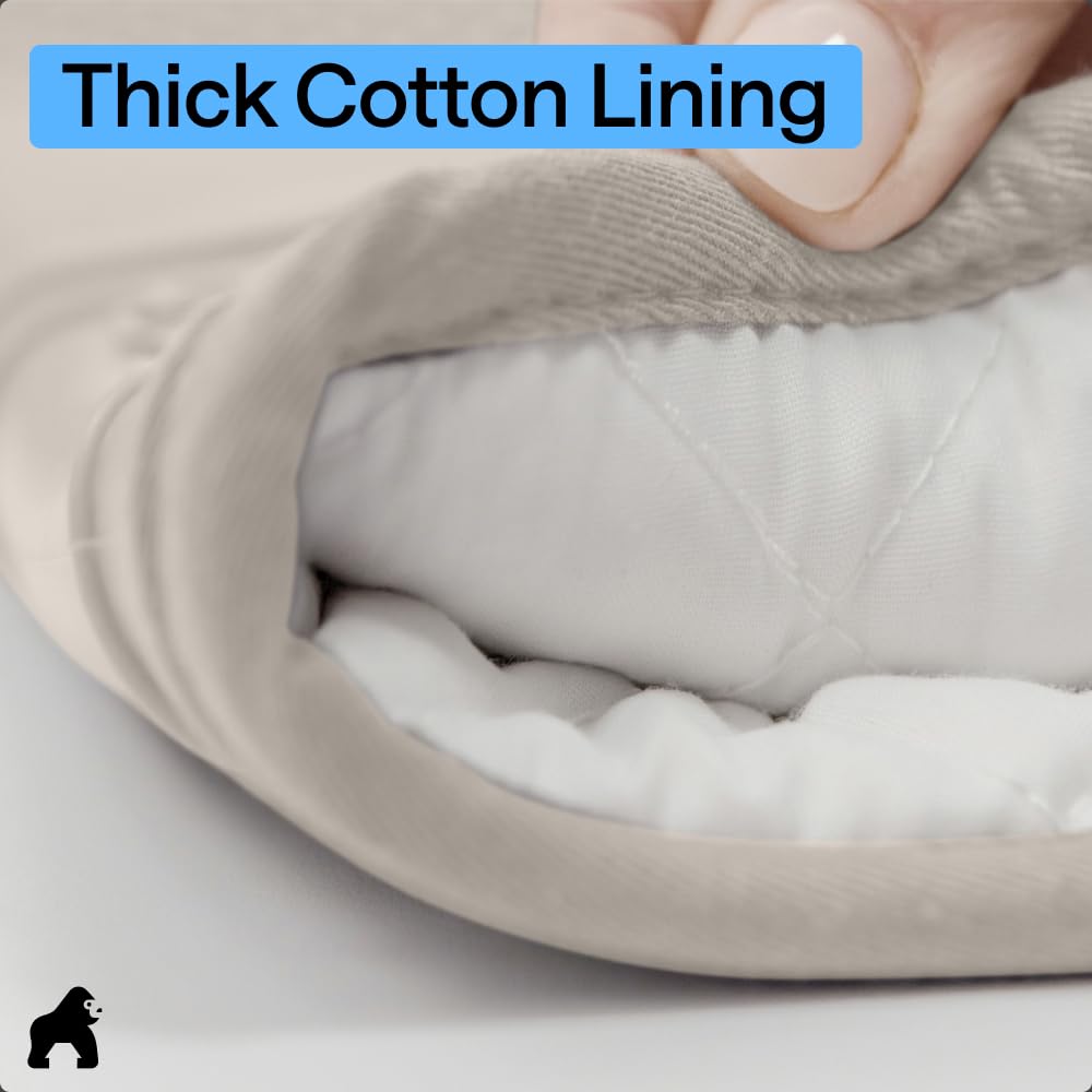 THICK COTTON LINING THROUGHOUT: stay comfortable while you cook; soft cotton lining offers additional protection and comfort, and feel simply amazing; plus, silicone is flexible and conforms easily to your unique grip