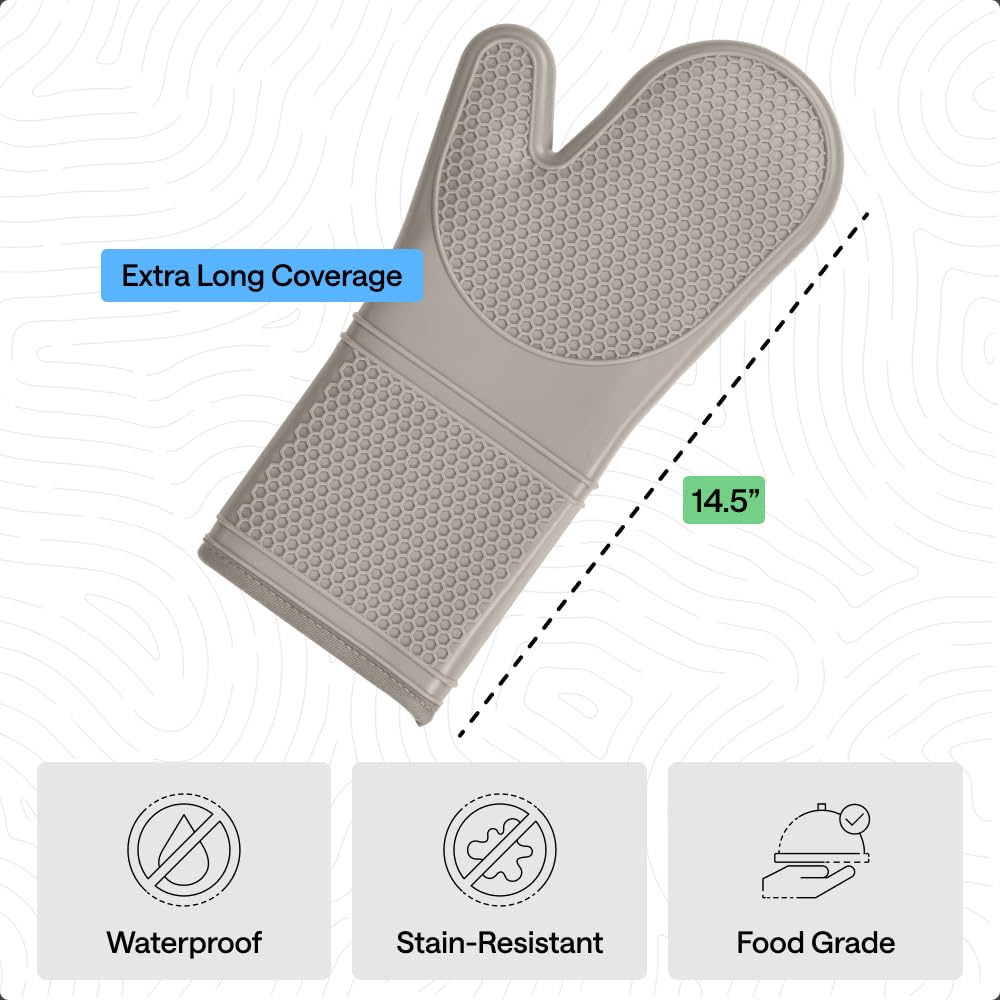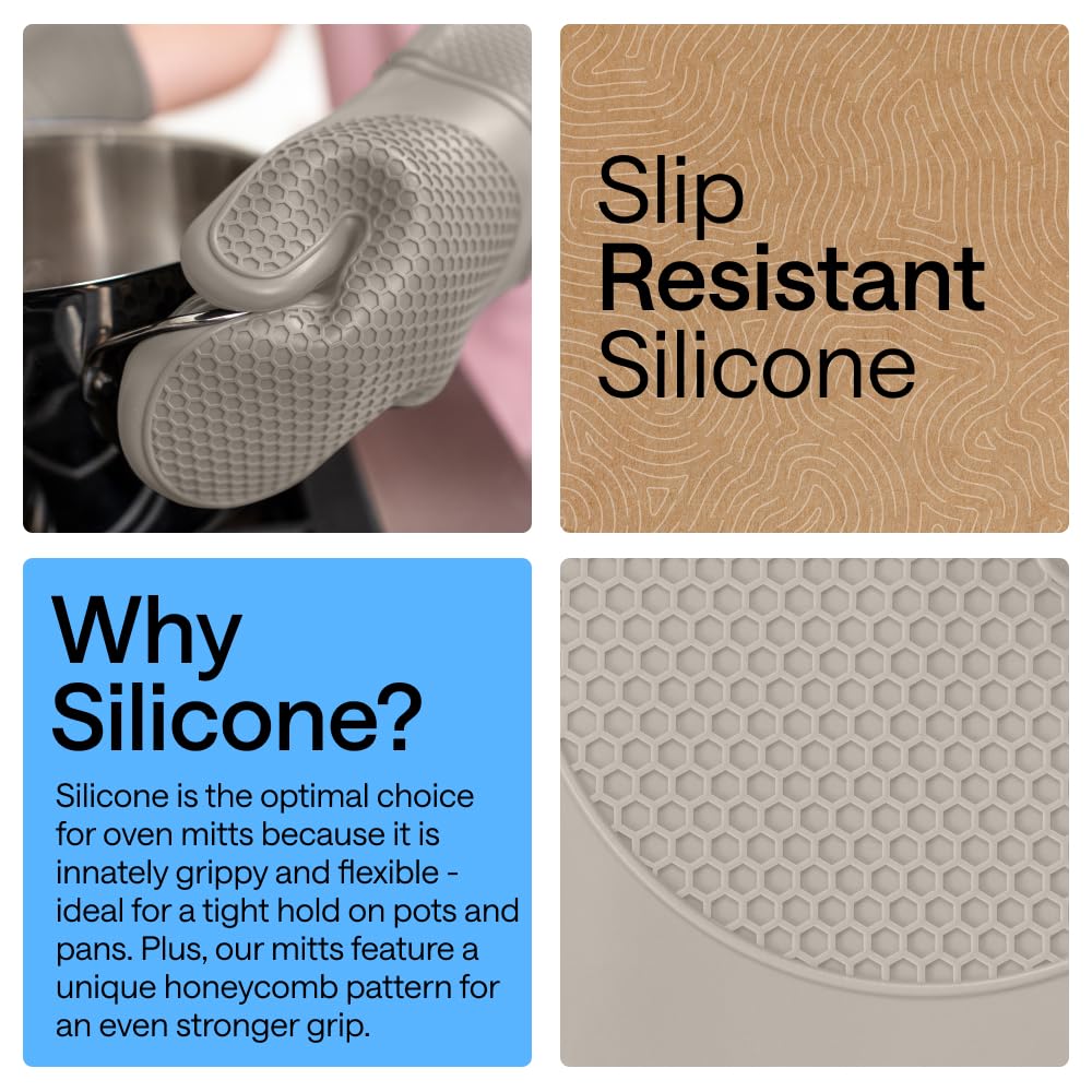 GET A BETTER GRIP: the best oven mitt pair; constructed of durable silicone, mitts are naturally slip resistant, helping you to get the best grip while you cook; unique textured honeycomb pattern helps you hold tight to pans, pots and baking sheets without hindering your natural grip