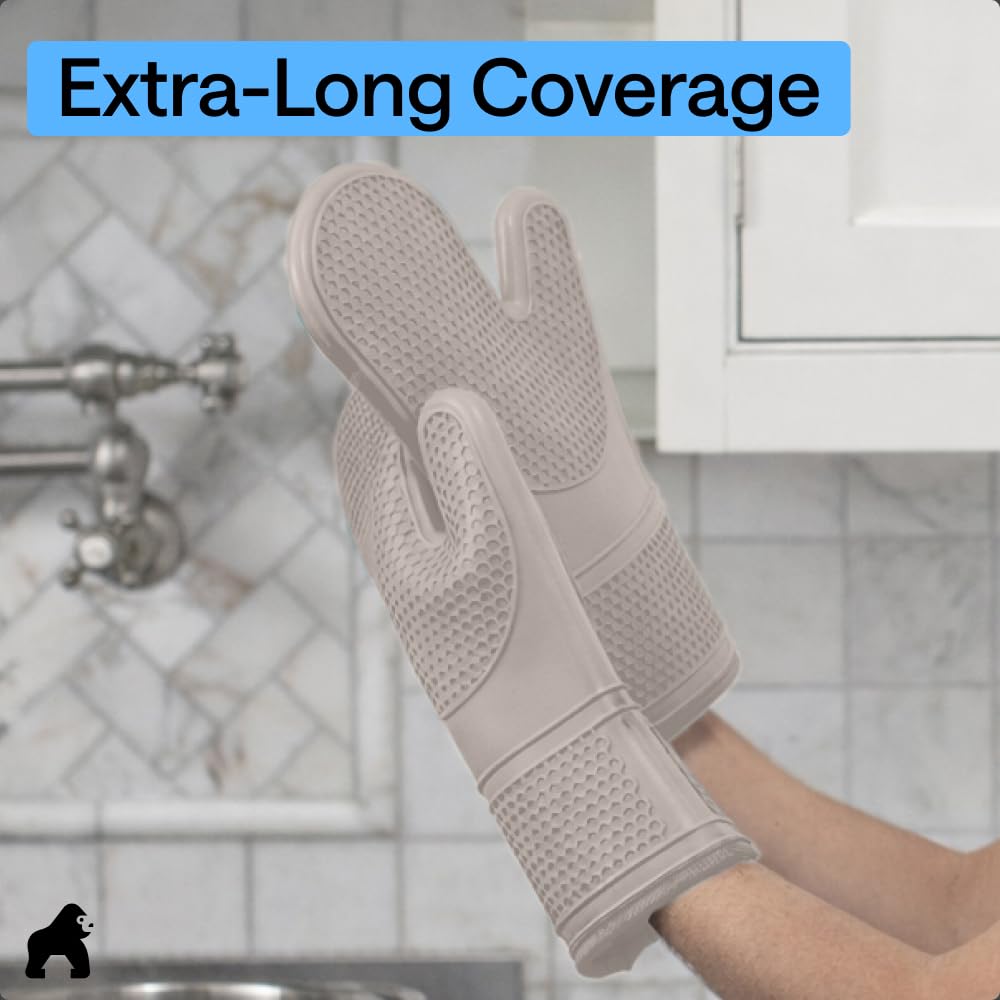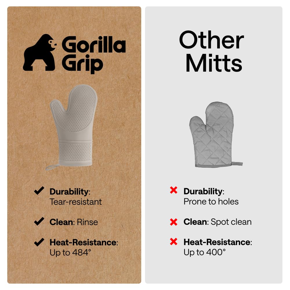WATERPROOF AND STAIN RESISTANT: no more constantly stained oven mitts; Gorilla Grip Silicone Mitts are both stain resistant and waterproof; spills can easily and instantly be rinsed away under water; hot liquids won’t soak through and scald your skin as they would with other materials