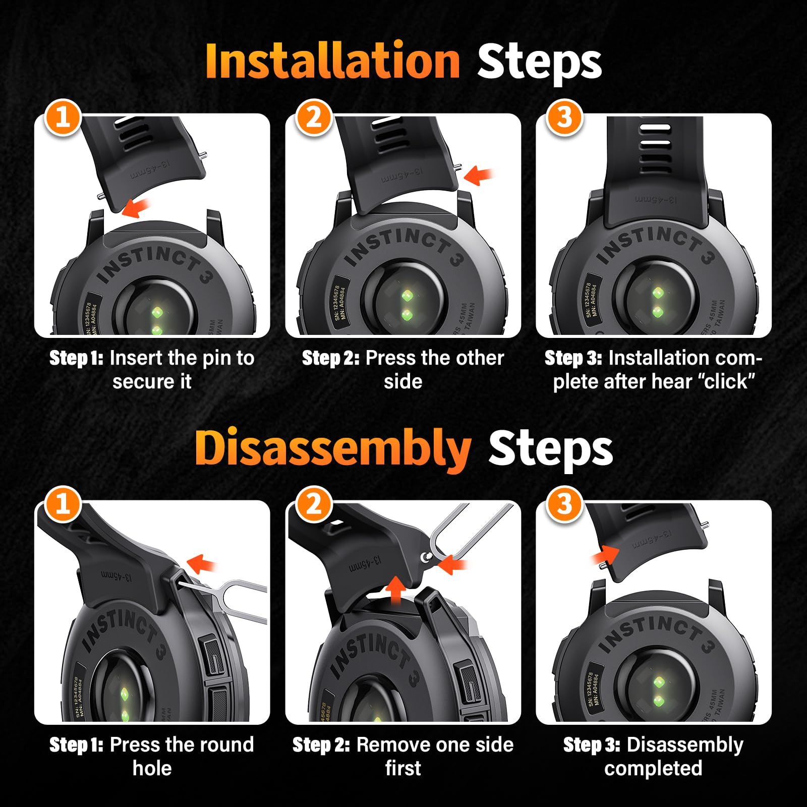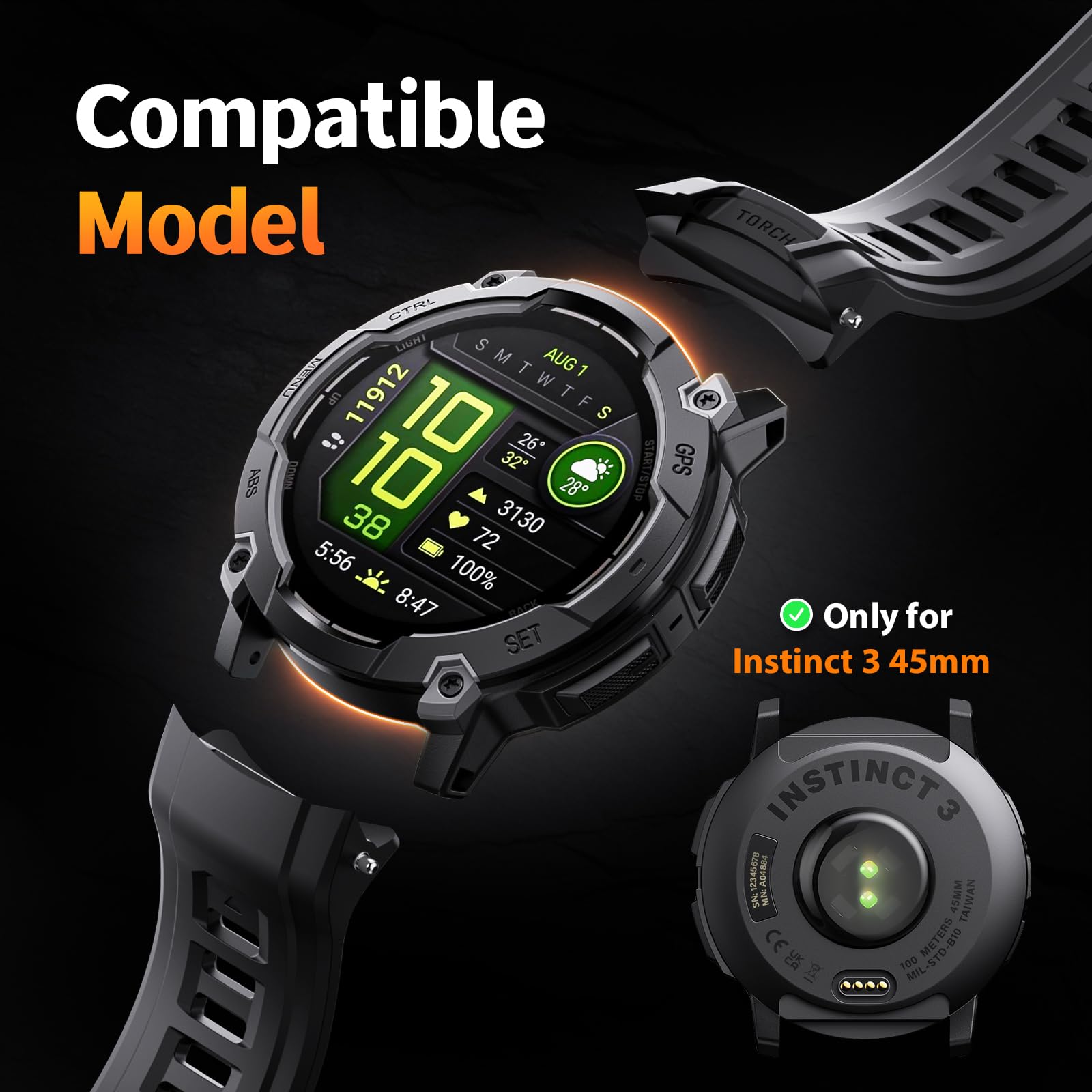 [Exact Compatibility: Only for Instinct 3 45mm]Exclusively fits Garmin Instinct 3 45mm—NOT compatible with Garmin Instinct 3 (50mm), Instinct 2X, Instinct 2, Instinct, Instinct 2S, or other Garmin watch models. Unsure about your watch’s size? Feel free to contact us for a quick compatibility check before purchasing.