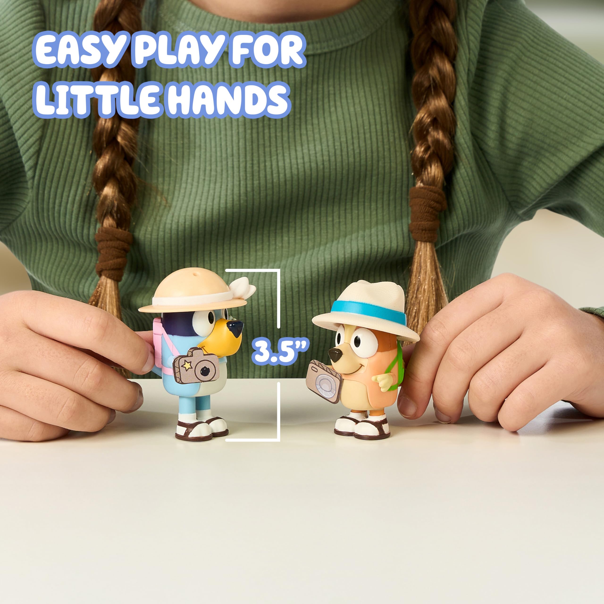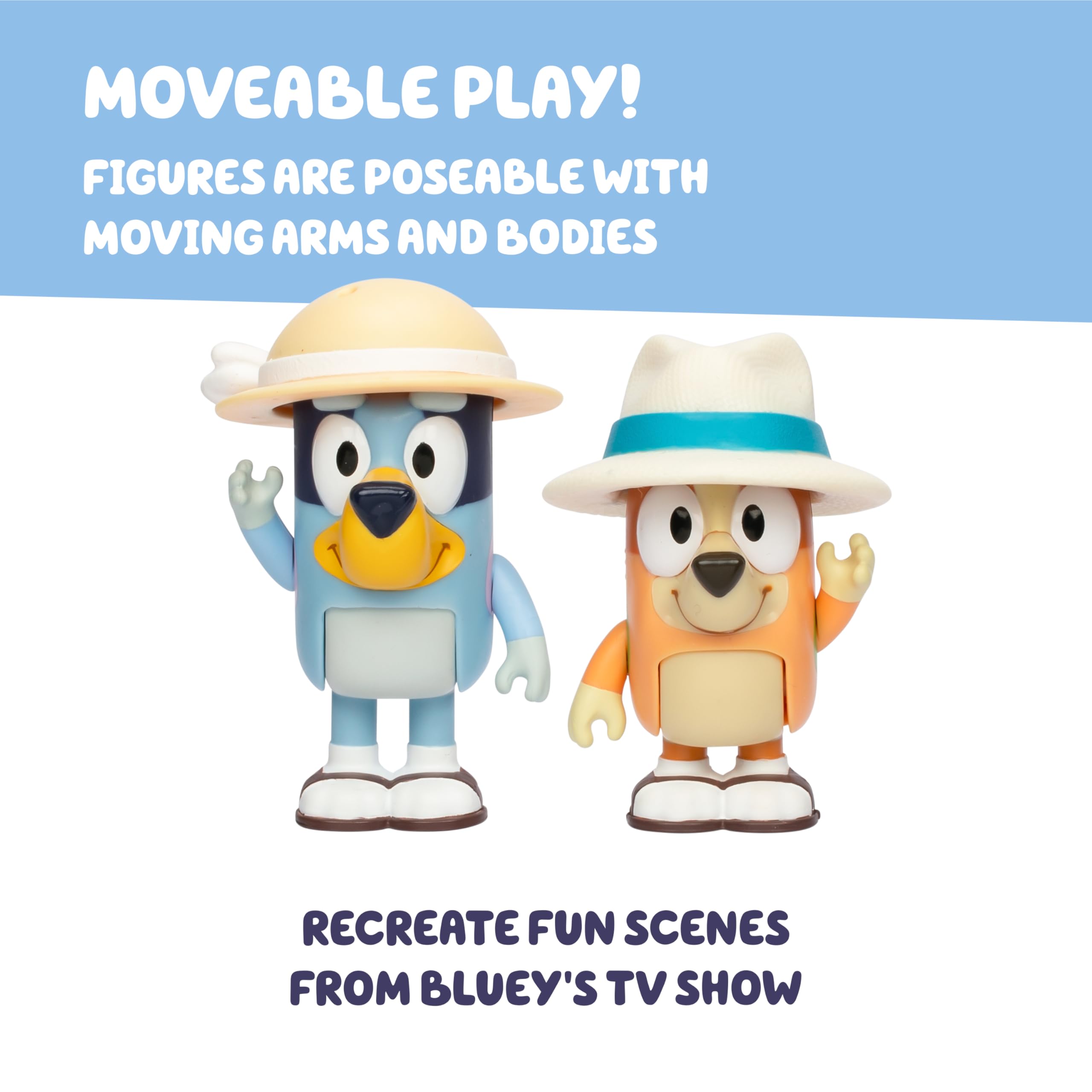 Bluey Holiday Pack: Bring home the fun of Bluey to recreate memorable moments from the show with our toddler figurine toys inspired by the episode “Born Yesterday”; this Bluey playset includes two Bluey adventure holiday figures ready for playtime