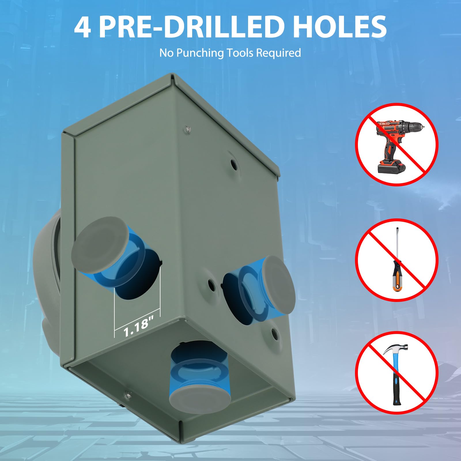 Upgrade Design - Outdoor 50 amp power inlet box benefit from a spatial interval measuring 6.1 * 4.1 * 3.1 inches, allowing for near wiring and superior heat dissipation, avoid overheating due to long-time use, more durable and safe, ensuring a longer service life. The removable front panel facilities are easy to install, while the 1.2-inch combination hole with 4-way connection points (left, right, bottom, real) offers flexibility in wiring to switches and electrical panels from multiple directions