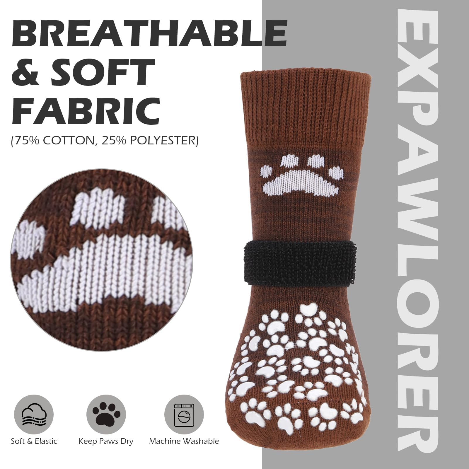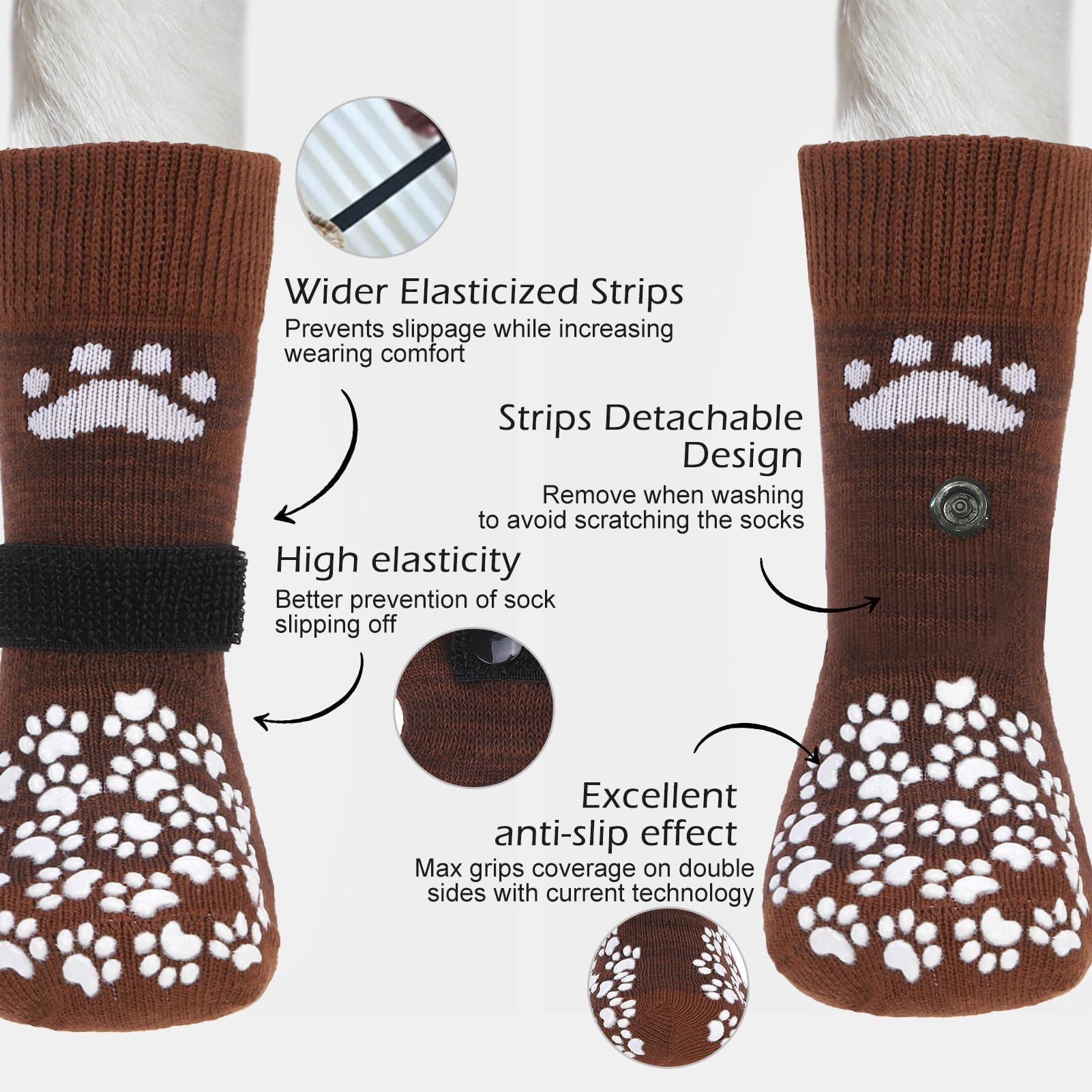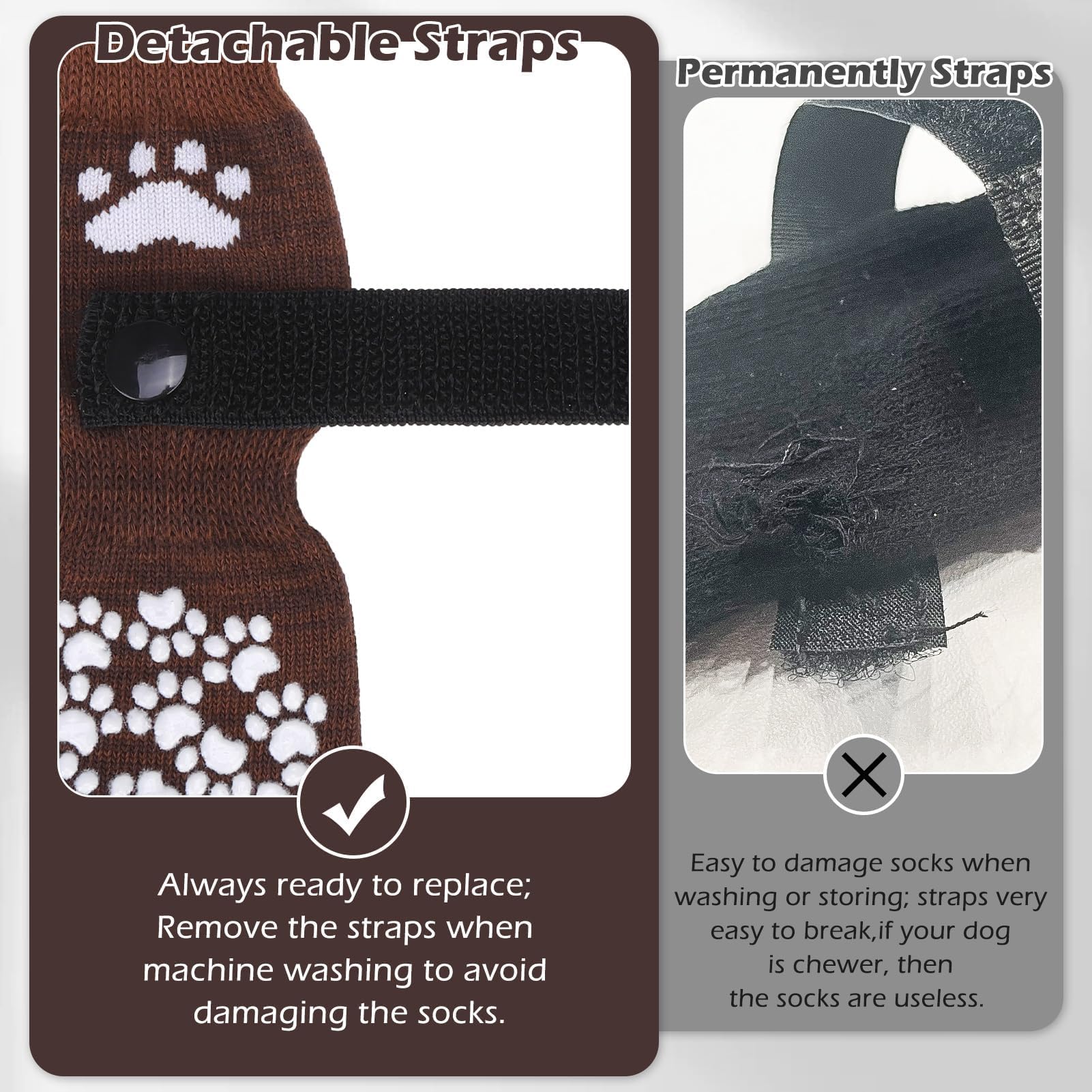 [Anti-Fall Off] Updated with wider and longer elastic sticky straps, there is more room for adjustment depending on your dog's feet, to prevent socks from falling off, greatly increase wearing comfort, and keep your socks safe from scratches in the wash, we’ve designed a removable sticky straps so you can easily take it off before washing.