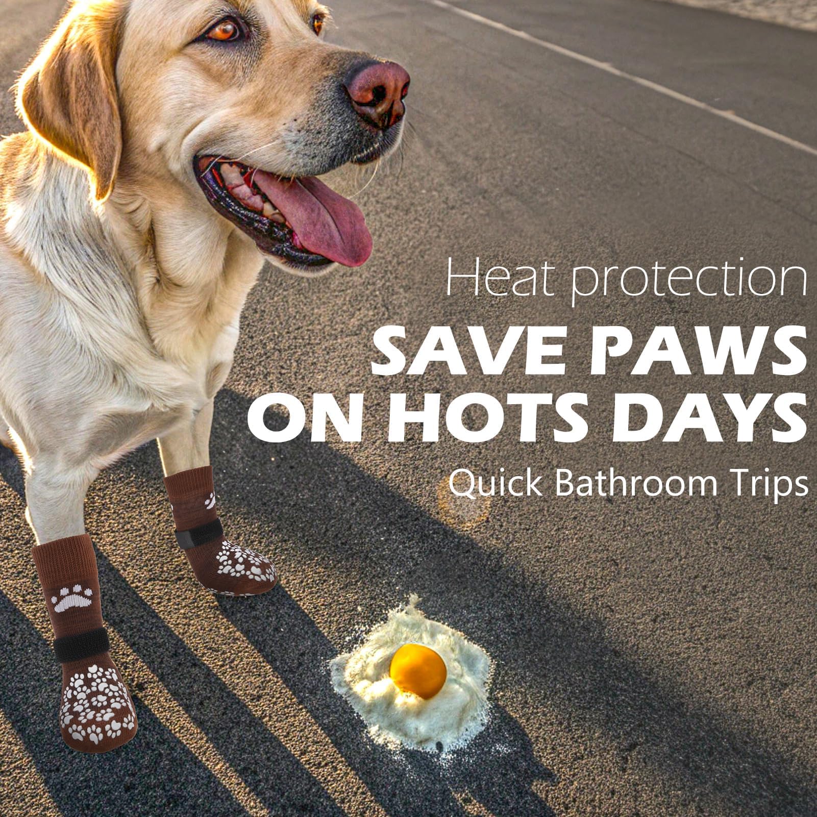 [Premium Material] Made of elastic and comfortable breathable knit fabric, It's soft and light, so dogs will easier to accept it, The durable bottom with extra-thick grip is specially crafted to shield your furry companion's paws from the hot and cold pavement, and rough outdoor surfaces. these socks create a protective barrier between your dog's paw pads and the ground, guarding against extreme temperatures and rugged terrain.
