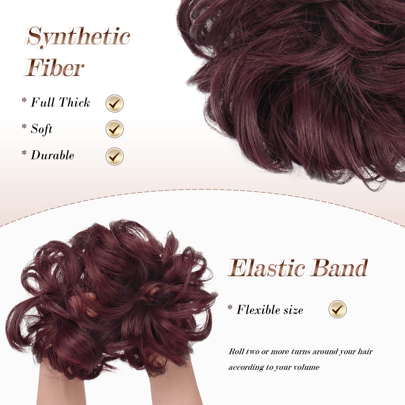 Elastic Hair Bun: The elastic hair tie on the hairpiece can be adjusted for thin or thick hair. If the hair piece bun is too loose, you can secure with hair pins, which will make the hair bun tight on your head.
