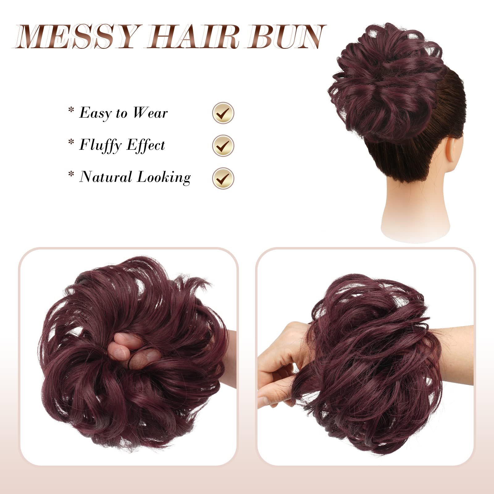 Natural & Fluffy: Messy hair bun weighs 1.45 oz/pcs, perfect for adding volume and fullness to a updo or a ponytail. This eye-catching hairpiece bun is very soft and natural, looks like your own hair.