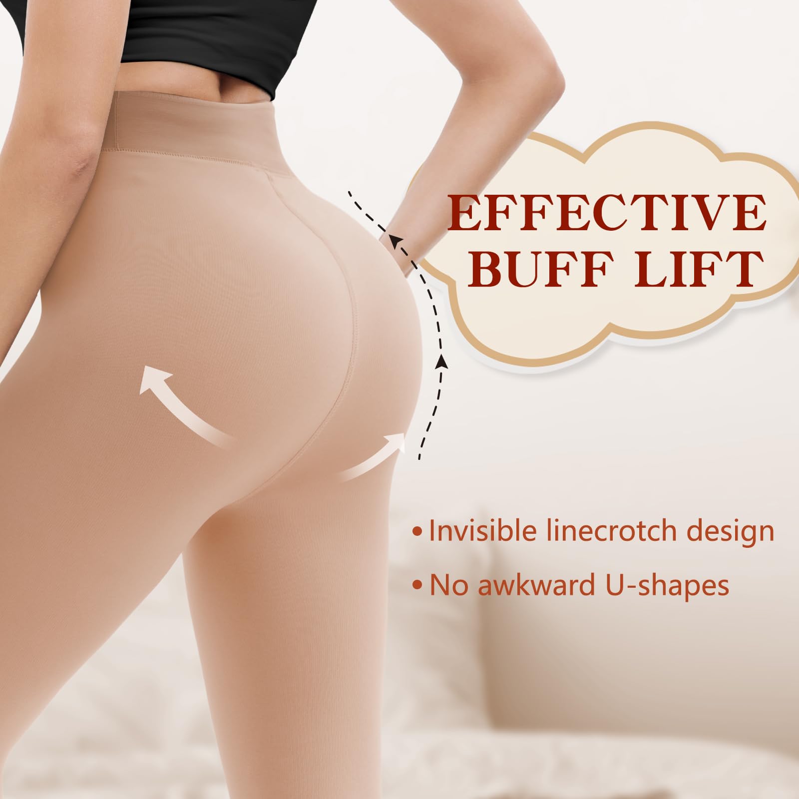 【Invisible Crotch Design】Our fleece lined tights feature an invisible single line crotch design, compared to other double lines crotch designs on the market, our fleece lined leggings highlights the lines of the buttocks and has a visual effect of lifting the hip and slimming the leg. The good elasticity of fleece tights can firmly tie the pants to your legs, preventing the crotch of the tight from slipping and falling off, not affecting your walking