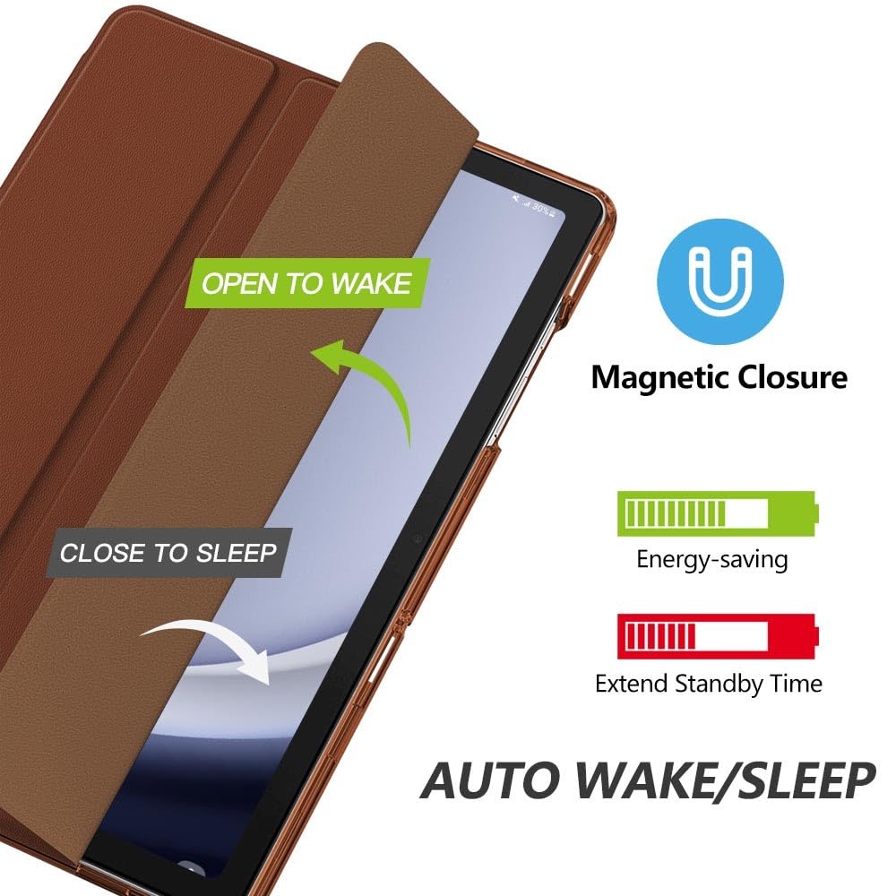 Auto Wake/Sleep: Built-in magnetic strip, automatically wakes or puts your tablet to sleep when the lid is opened and closed. this Tab A9 Plus Case Protects and extends battery life