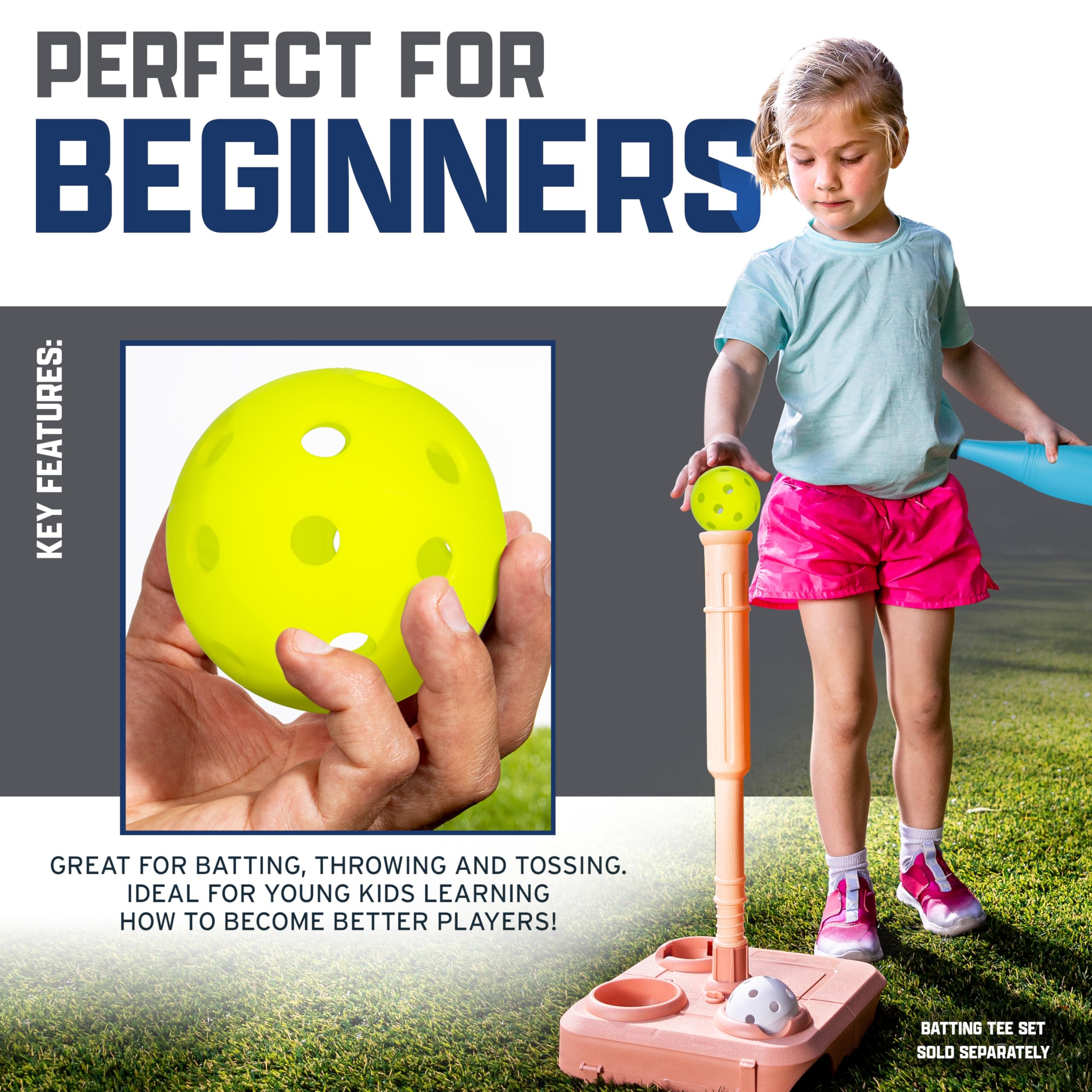 KIDS SOFTBALL BAT + BALL SET: This 24" inch kids plastic softball bat is the perfect jumbo size for kids ages 3 and up to learn the game while having a ton of fun!