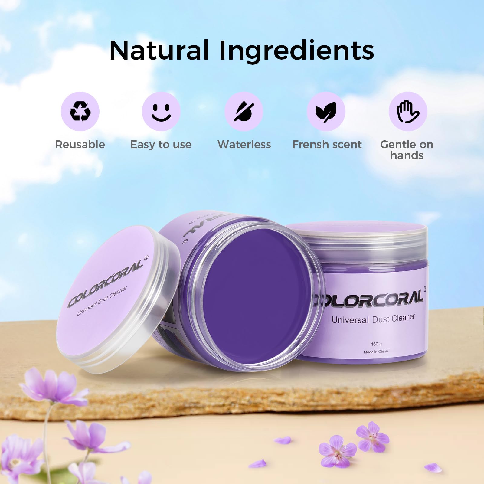 π The cleaning putty for car interior is made of natural gel, not sticky to hands, smells sweet with lavender fragrance, totally no stimulation to skin.