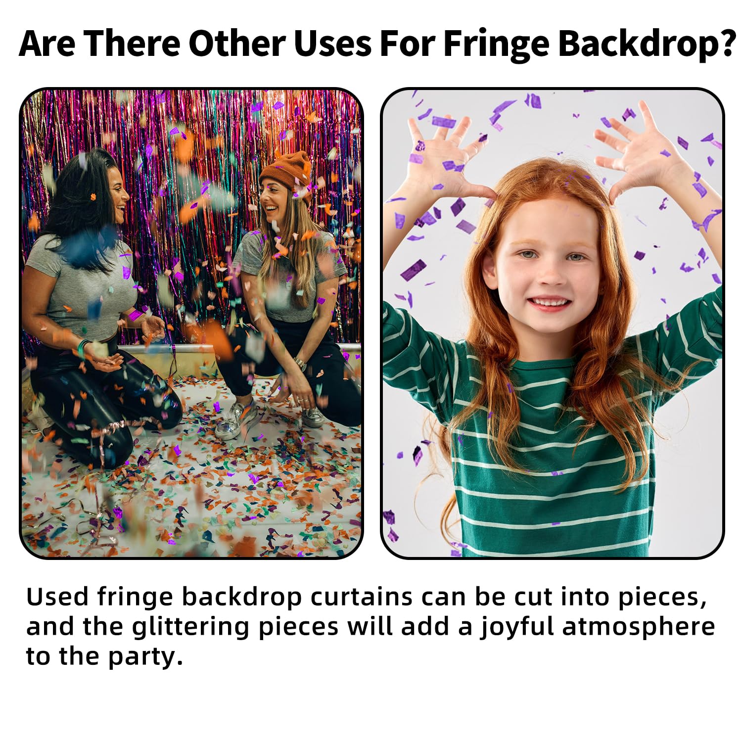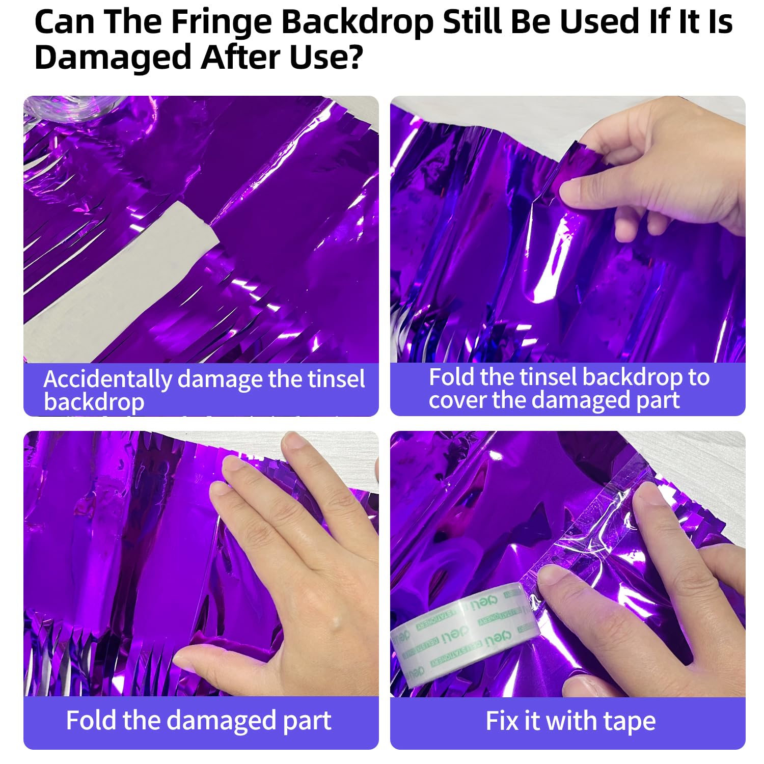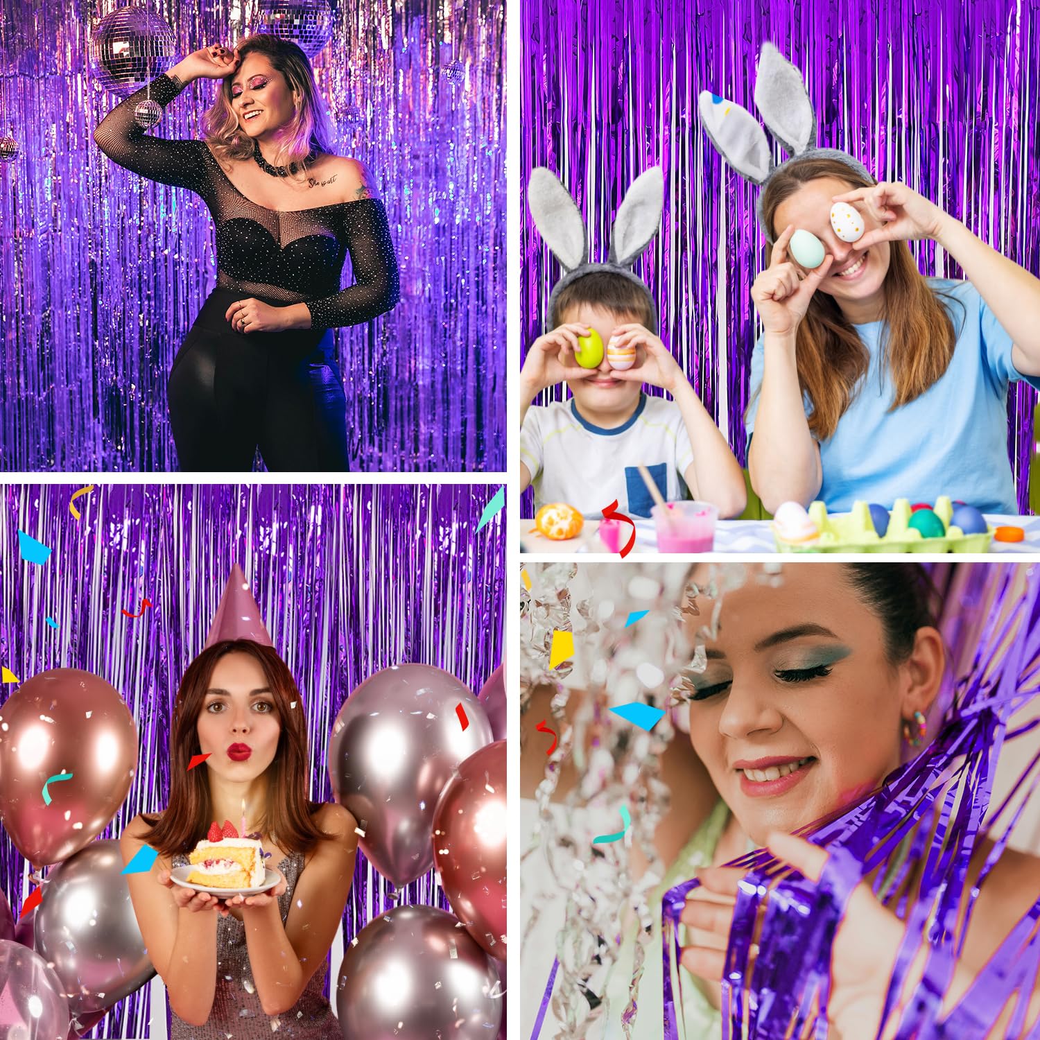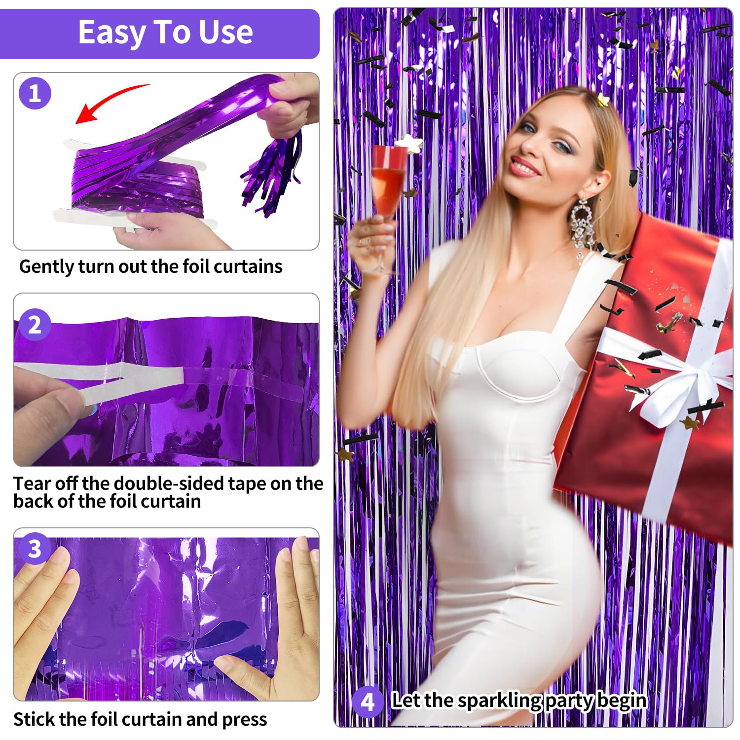 Easy To Use: Purple foil fringe curtains party decorations are prepared with double-sided tape on the back side, making it easy to stick them to a flat and clean surface, and cut them to desired length. Get a unique effect by overlapping different curtain