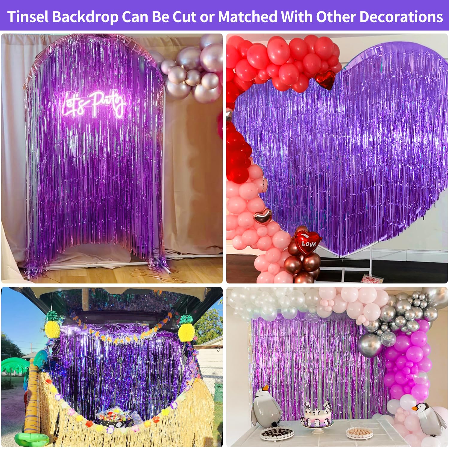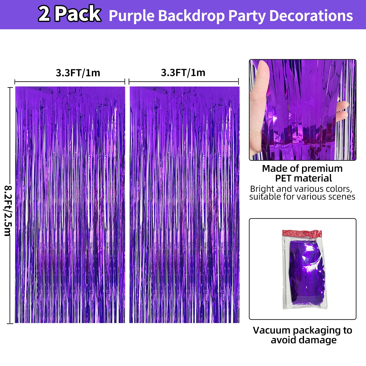 Purple Party Decorations: Two tinsel backdrops are vacuum sealed to protect backdrop from breaking during shipping. One purple backdrop measures 3.3x8.2ft, making it easy to add some fun to birthday decorations, perfect for all occasions