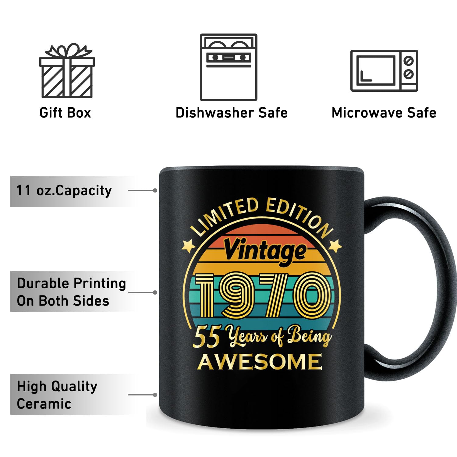 Nostalgic Design: Featuring a stylish and timeless design, this mug highlights the significance of the year 1970. Ideal for those who appreciate a touch of nostalgia, it's a unique and thoughtful gift that stands out from the ordinary.