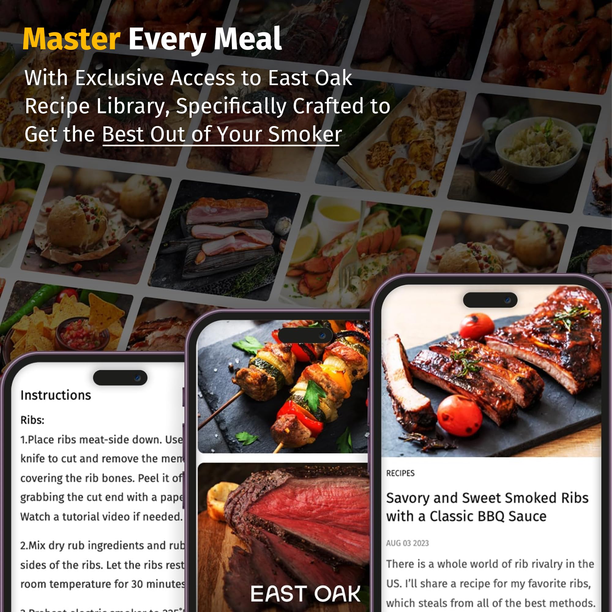 đ§đ˛đģđąđ˛đŋ đŽđģđą đđđļđ°đ đ§đŽđđđ˛: The 800W power heating tube in the electric smoker creates consistent smoke from wood chips, guaranteeing tender, juicy meats through low and slow cooking. Follow EAST OAK's website for more delectable recipes