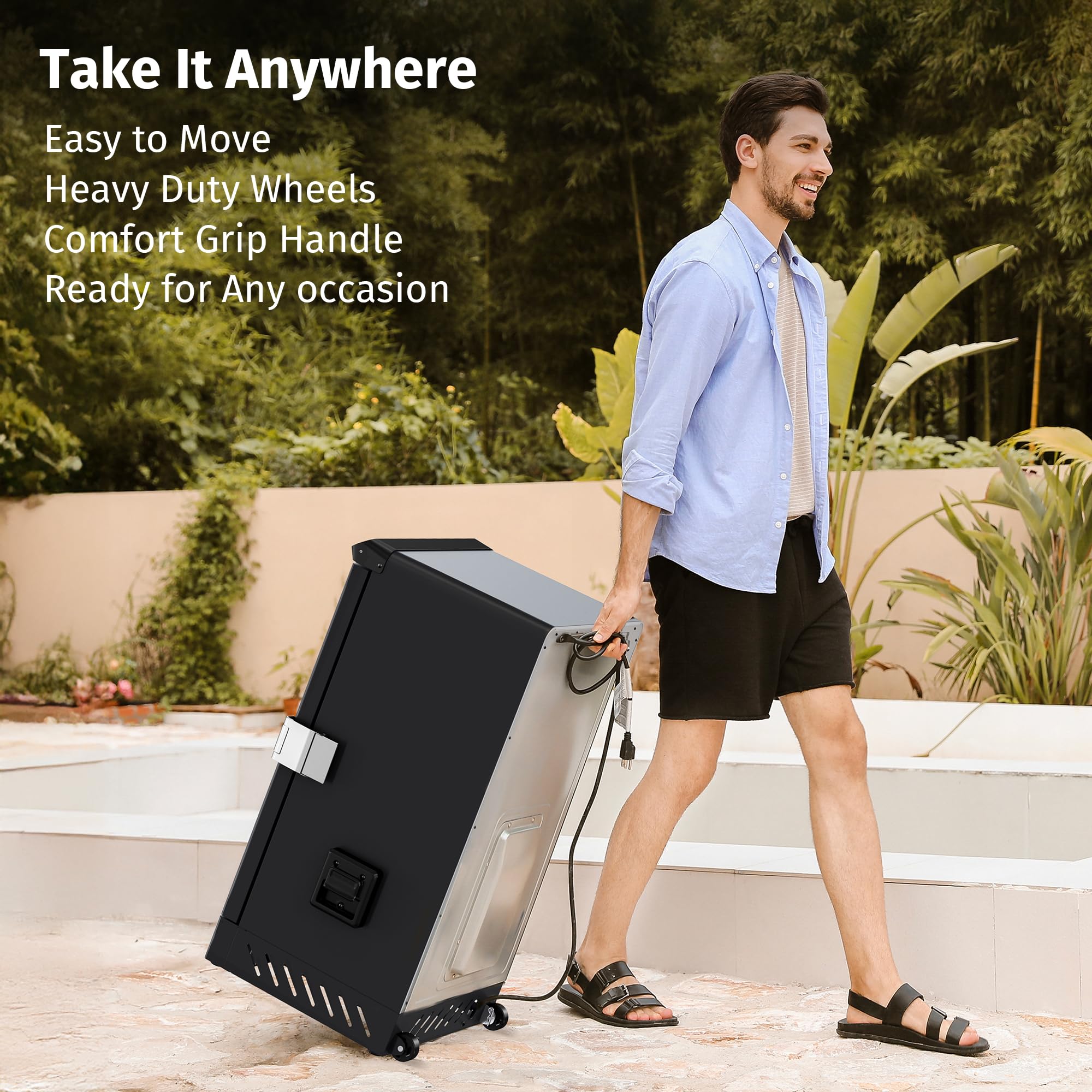 đđŽđđ đđŧ đ đŧđđ˛: With 2 rear wheels and a handle, you can effortlessly relocate the pellet smoker, enhancing your outdoor experience with friends and family. Perfect for Father's Day or Thanksgiving gifting