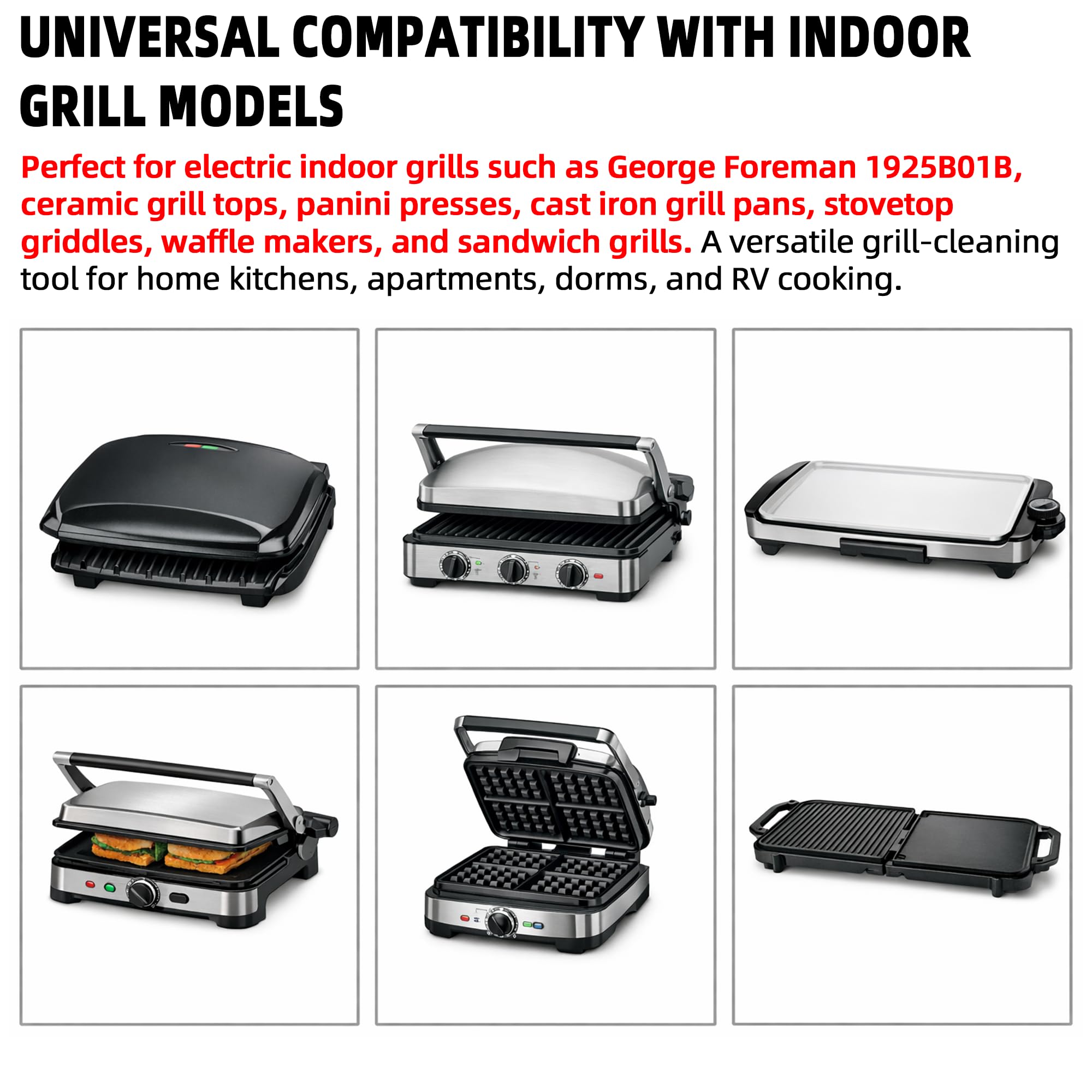 【Universal Compatibility with Indoor Grill Models】Perfect for electric indoor grills such as George Foreman 1925B01B, ceramic grill tops, panini presses, cast iron grill pans, stovetop griddles, waffle makers, and sandwich grills. A versatile grill-cleaning tool for home kitchens, apartments, dorms, and RV cooking.