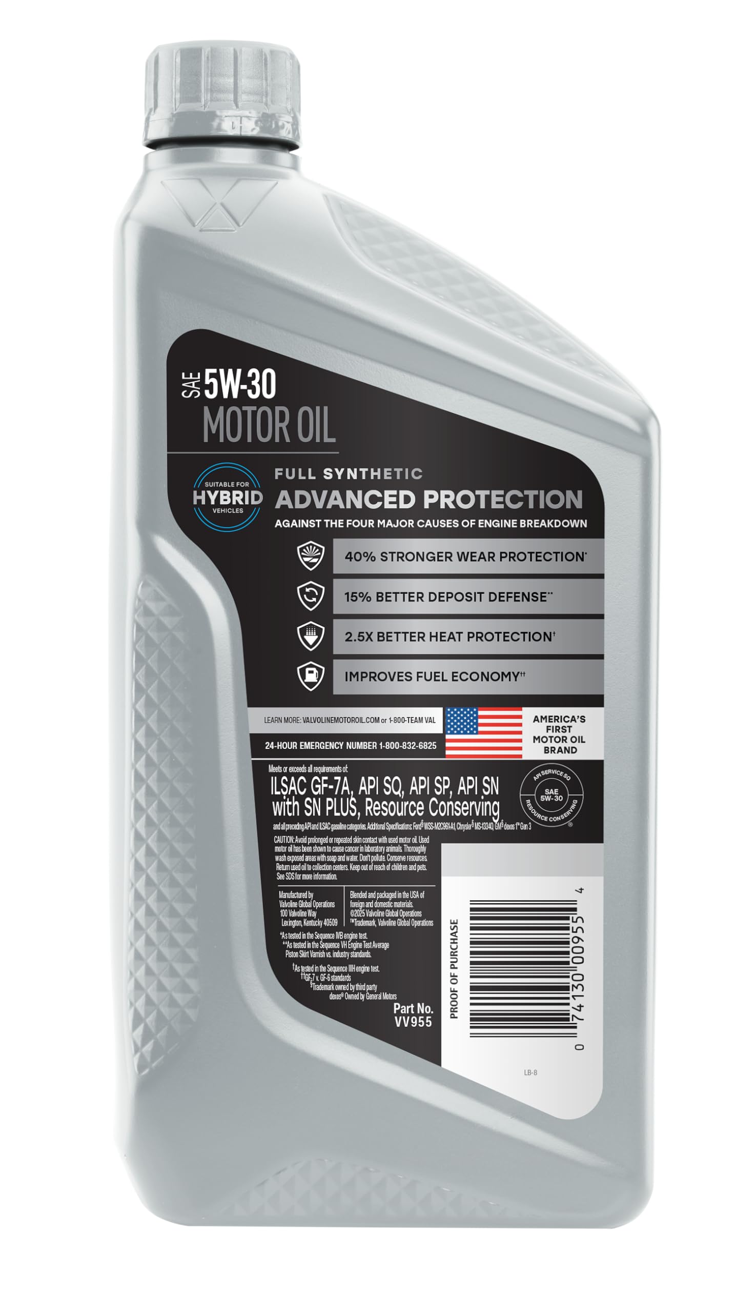 Meets or exceeds all requirements of ILSAC GF-6A, API SP, API SN with SN Plus, API SN, GM dexos 1 Gen 7