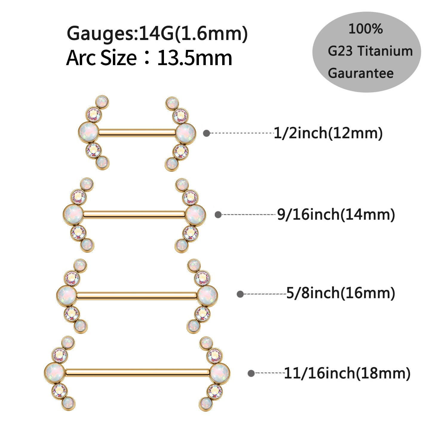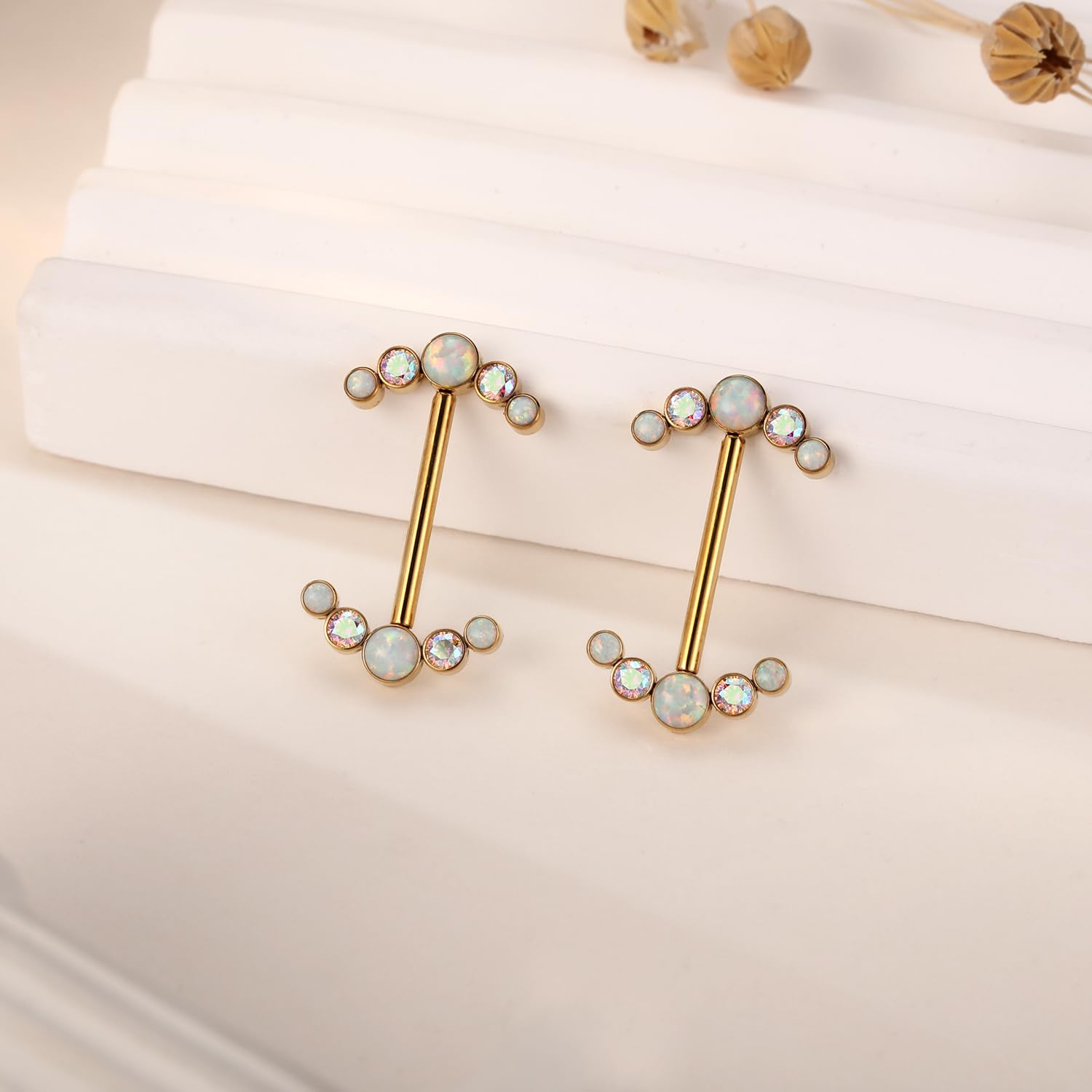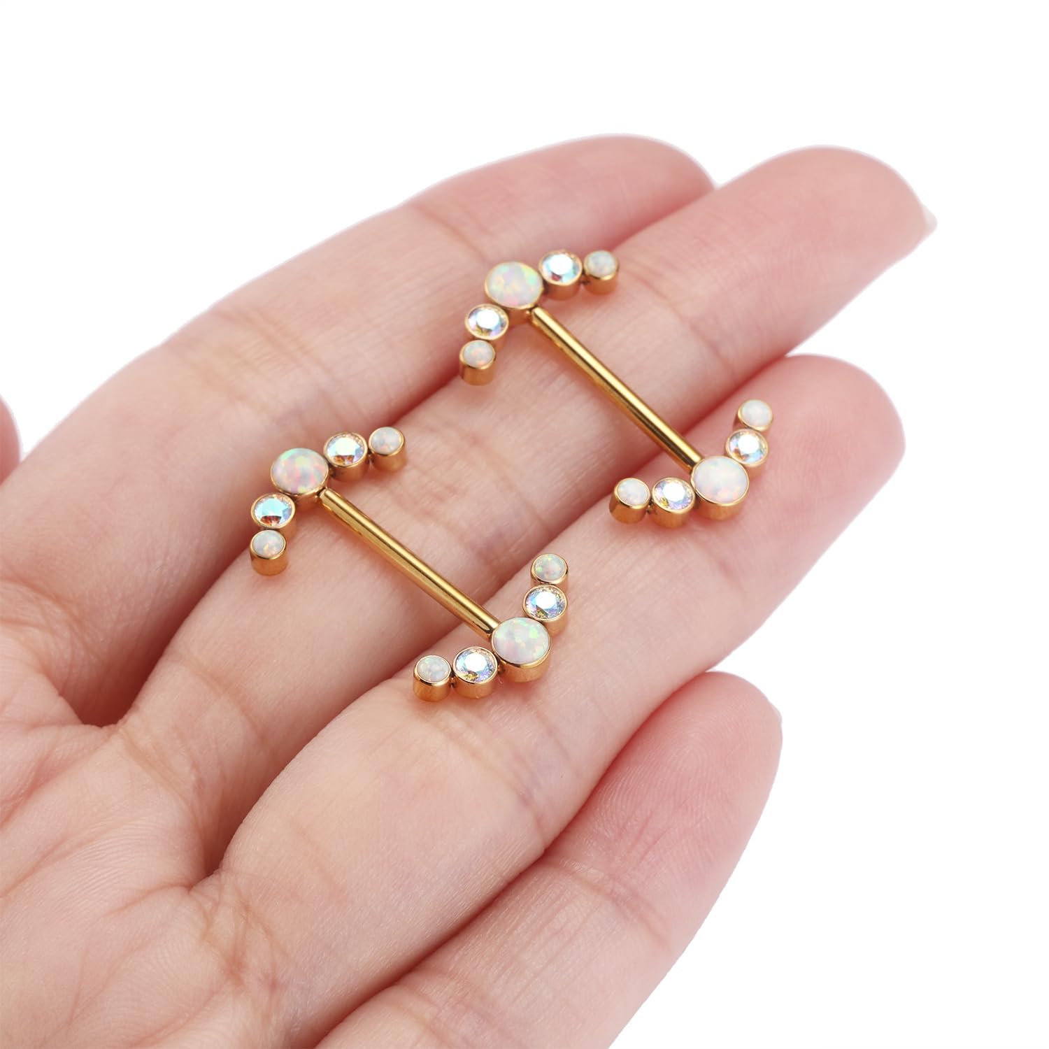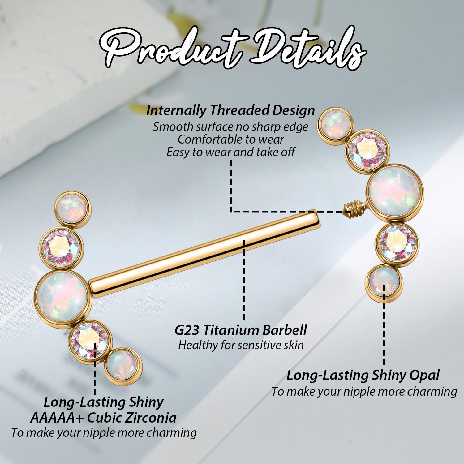 Attractive Style: The nipple ring with shiny cute round ABCZ&OPAL on both side,make your nipple piercing more attractive