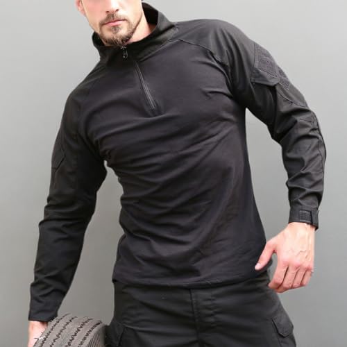 Description The combat shirt is made of 65% polyester and 35% cotton, the sleeve & shoulder is made of Rip-stop fabric, and the body is made of elastic cotton. The shirt is design for tactical combat, 1/4 front zip; abrasion resistant forearms; Large patch on both arm for individuality patches; Long sleeve with Hook & loop adjustable cuffs; Two pockets for reinforced protected elbows pads; Two arm pockets which is enough for EDC gear equipment, tactical knife, pen, wallet, flashlight and Clip etc. The tactical jacket is good for winter, autumn and spring. It is breathable, lightweight and anti-static. Its Raglan cut sleeves for improved range of motion and stay comfortable under your tactical vest or plate carrier. The Tactical T-shirt is great for outdoor sport, hunting, fishing, hiking, climbing, camping, travelling, motorcycle, rafting, cycling, army, combat and comfortable casual wear. SIZE INFORMATION US Small: Length 27.5" Chest 40.0" Raglan Sleeve 29.3" US Medium: Length 28.3" Chest 41.7" Raglan Sleeve 29.9" US Large: Length 29.1" Chest 43.3" Raglan Sleeve 30.5" US X-Large: Length 29.9" Chest 45.3" Raglan Sleeve 31.5" US XX-Large: Length 31.5" Chest 48.4" Raglan Sleeve 32.5" Please contact us if you have any question with the product and size, we will reply within 24 hours.