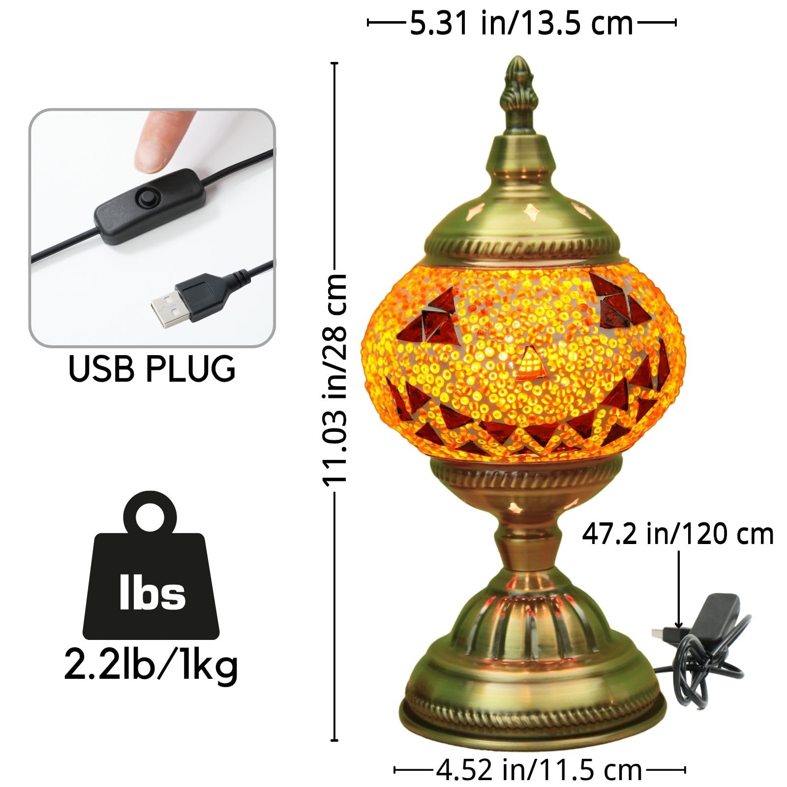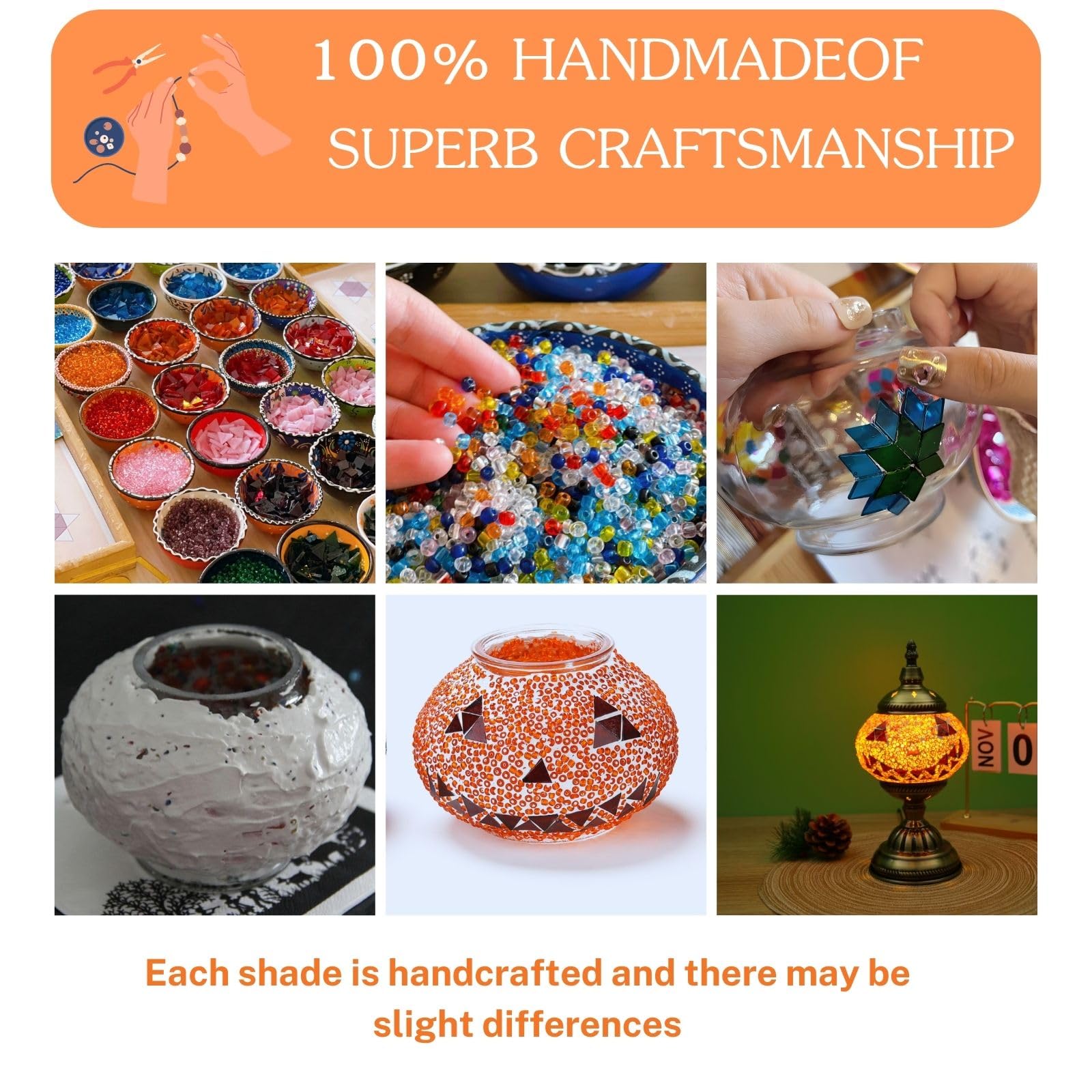 Illuminate your Halloween with the HGMASH Handcrafted Halloween Mosaic Pumpkin Lantern. This exquisite piece combines the traditional Turkish mosaic art with the festive spirit of Halloween, creating a unique and enchanting table lamp. Its stained glass witch hat design casts a warm, mesmerizing glow, perfect for setting a spooky yet sophisticated atmosphere in any room. Crafted from handmade glass with intricate details and a vibrant orange hue, it’s the ideal addition to your Halloween decor, serving as a desk lamp, night light, or a centerpiece for your celebrations. Why Purchase? Embrace the Halloween spirit with a lamp that’s not just a decoration but a piece of art. Its versatility as a night light, desk lamp, or part of your vintage decor makes it a must-have. The warm glow through the stained glass adds a magical touch to your space, making it perfect for anyone looking to elevate their Halloween ambiance with a piece that blends artistry with the playful charm of the season. FAQs 1) Q: Is the bulb included? A: Yes, it comes with an E12 bulb for your convenience. 2) Q: Can it be used as a year-round decor piece? A: Absolutely! Its timeless design and warm light make it suitable for any occasion. 3) Q: Is it suitable for outdoor use? A: It’s designed for indoor use to enhance your home, kitchen, or mantel decor. Packing Information: Each package includes 1 HGMASH Handcrafted Halloween Mosaic Pumpkin Lantern and 1 E12 bulb, carefully packed to ensure it arrives in perfect condition. Embrace the Halloween season with a touch of elegance and mystery. Shop now and let this stunning piece cast its spell over your home!