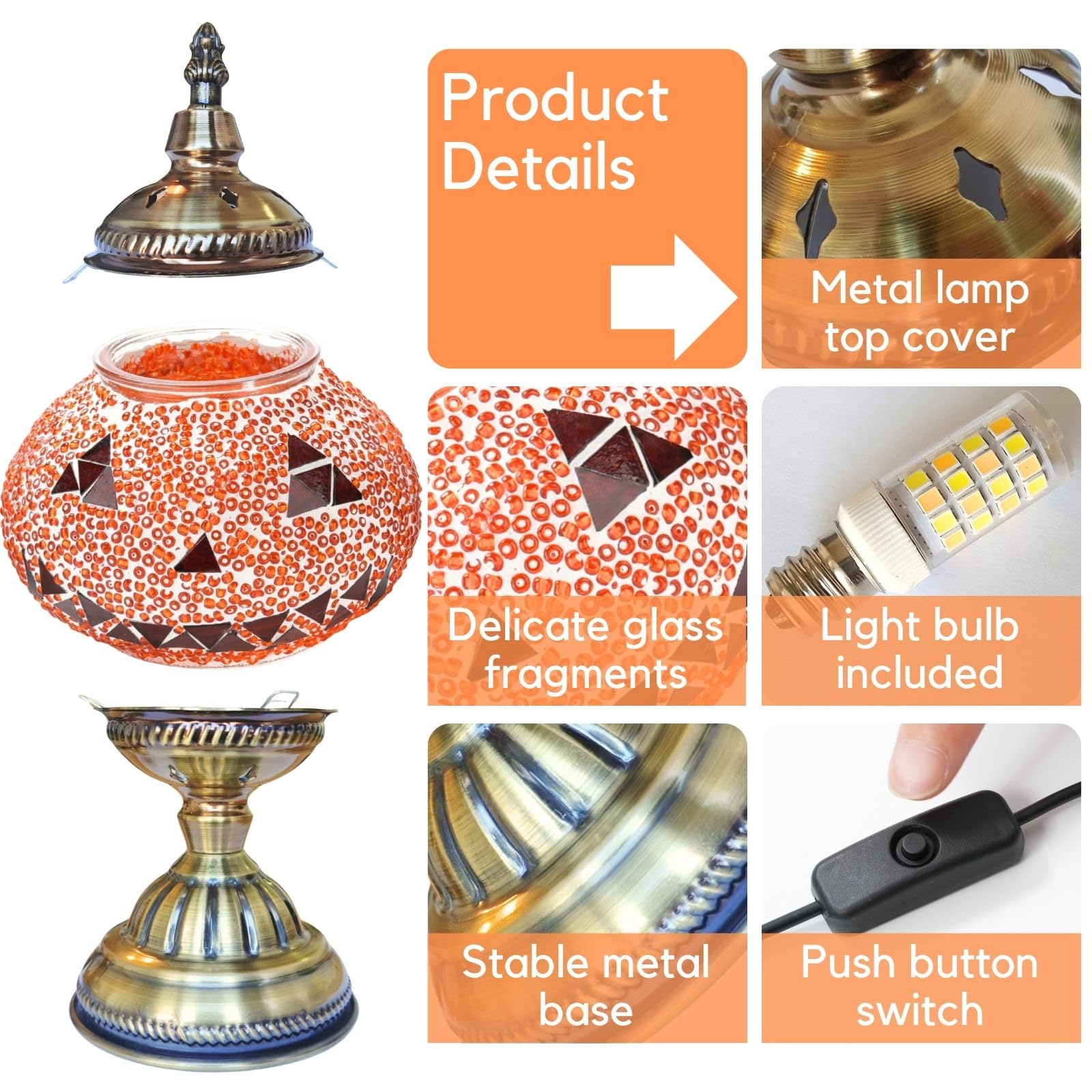 HGMASH Handcrafted Halloween Mosaic Pumpkin Lantern - Vintage Halloween Decor Table Lamp with E12 Bulb for Spooky Indoor Halloween Decorations