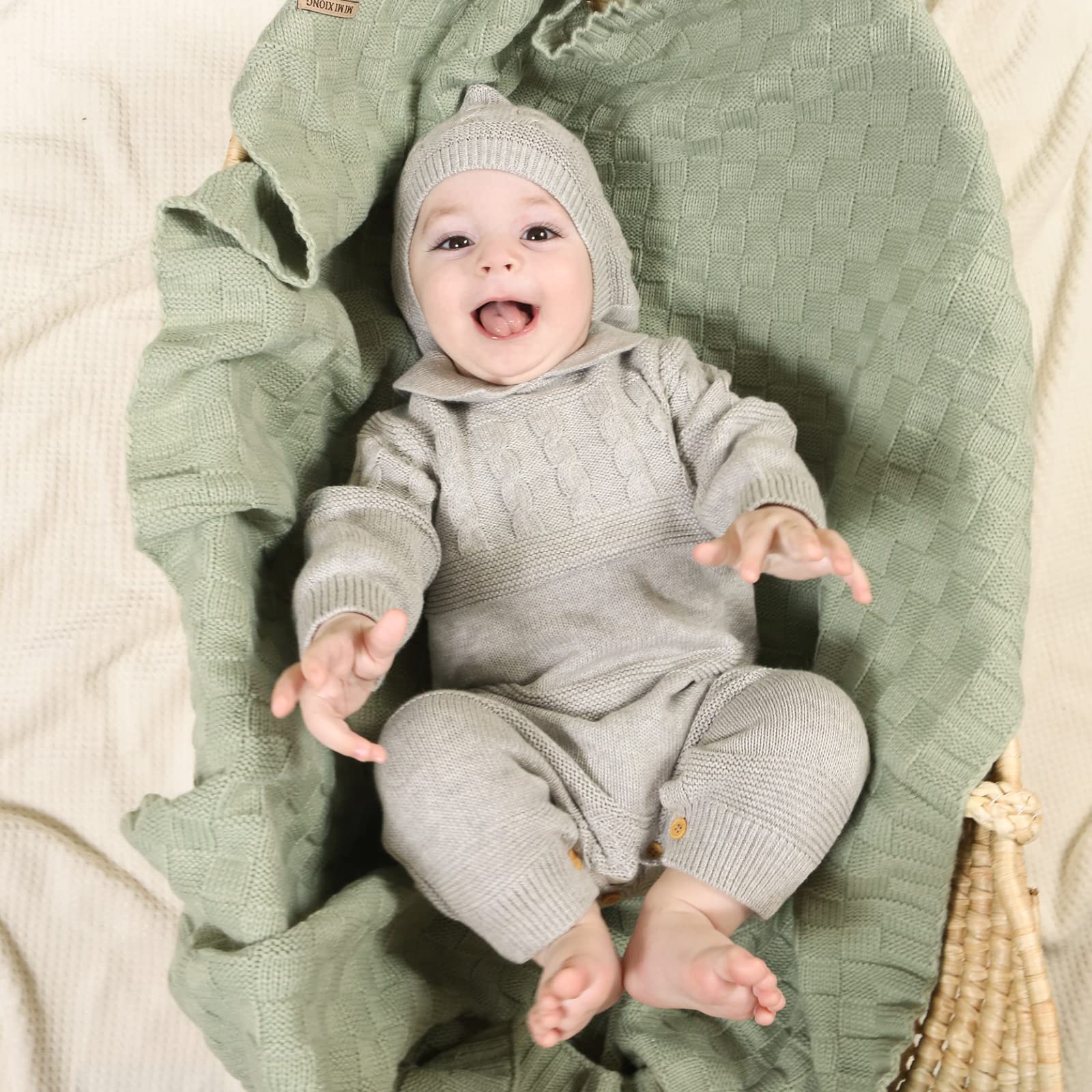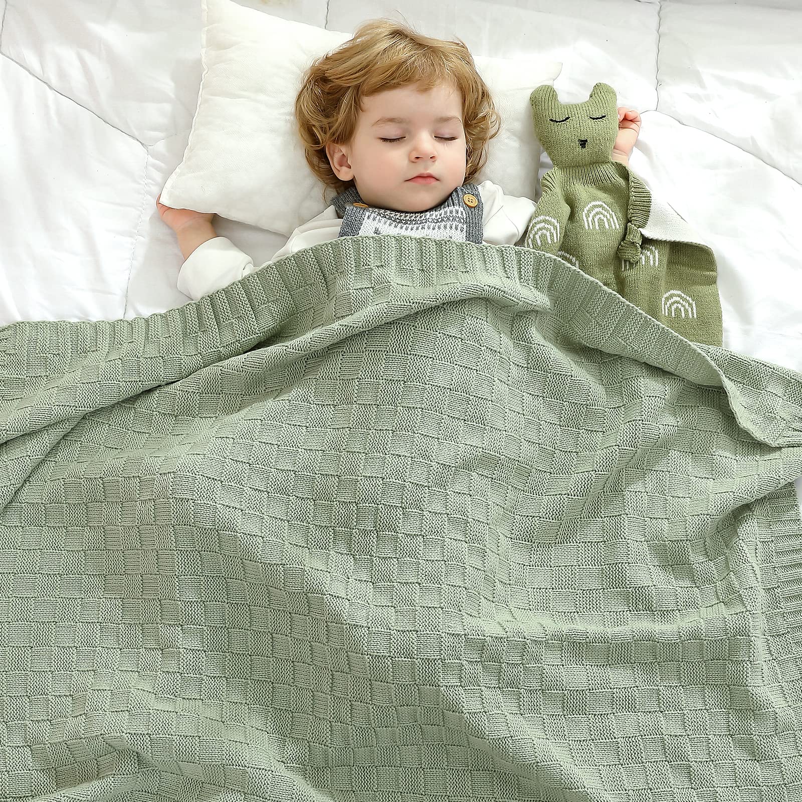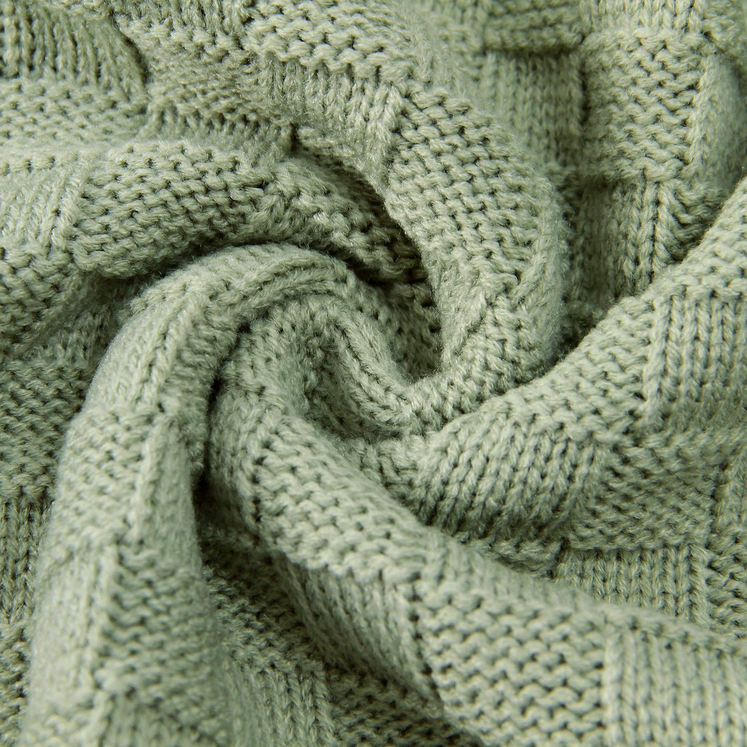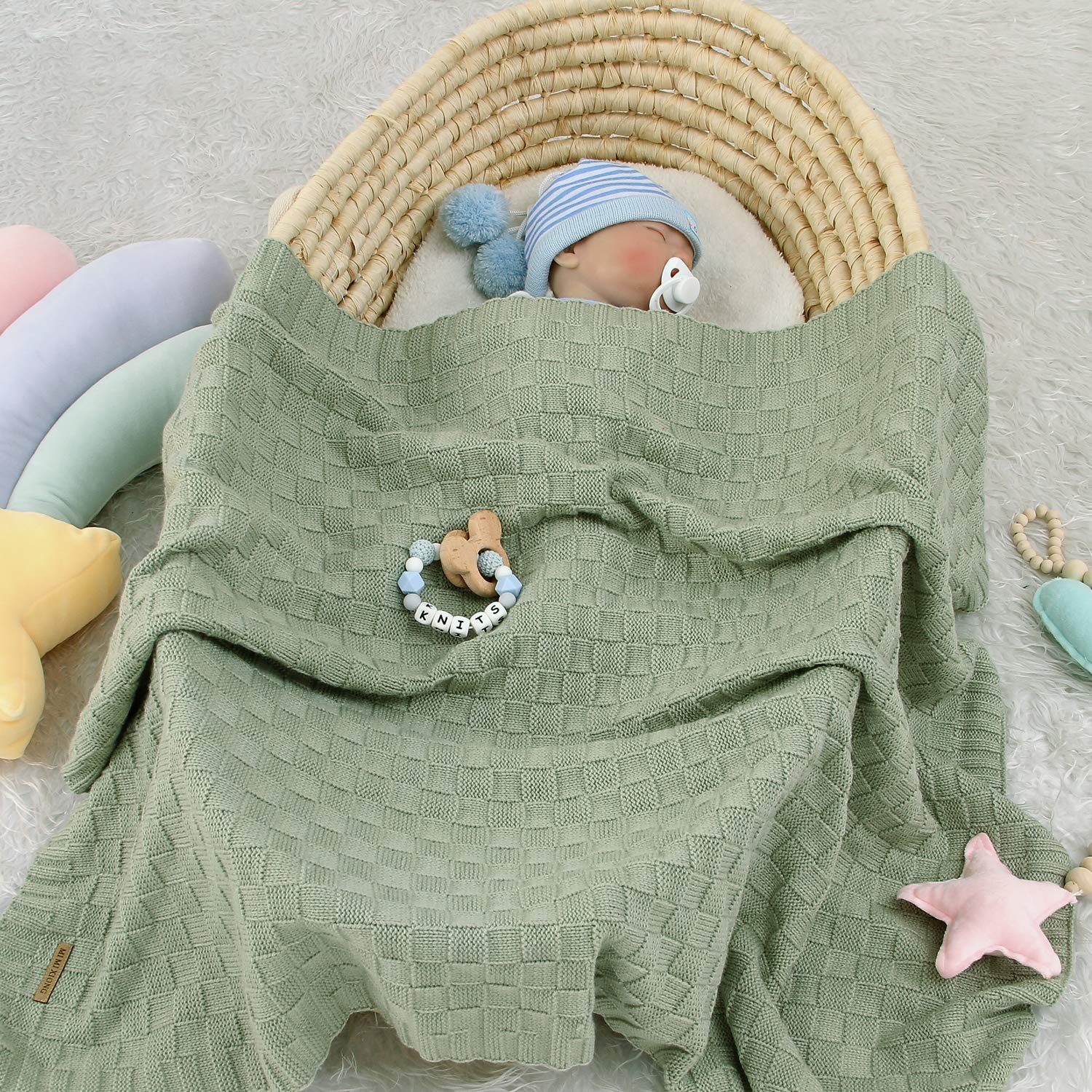 Timeless Cable Pattern & Colors: Delight in the beauty of the checker-pattern cable knit and the 11 delightful colors(light green, dark green, dusty blue, yellow, grey, pink, white, blue, brown, beige, and classic green), adding timeless elegance and childishness to this breathable baby blanket, match any nursery theme or personal style.