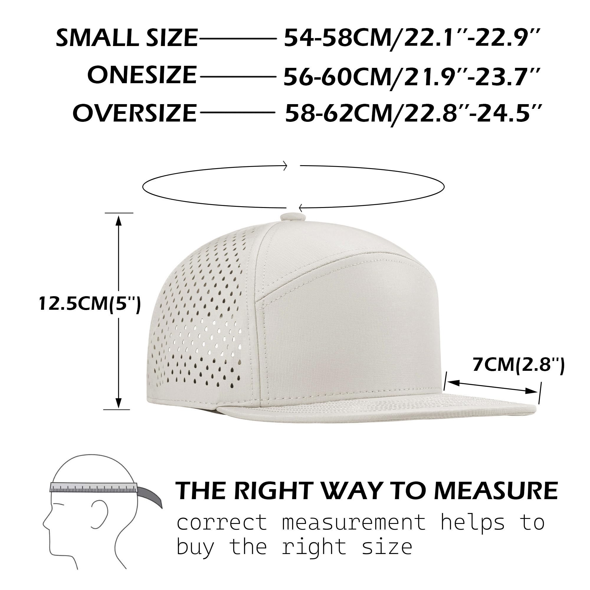 Varpepe Hat Design: Stylish and functional,structured front panels that maintains shape, 6-panel, flat brim, laser-perforated side & rear panels for breathability, and soft touch adjustable snapback closure