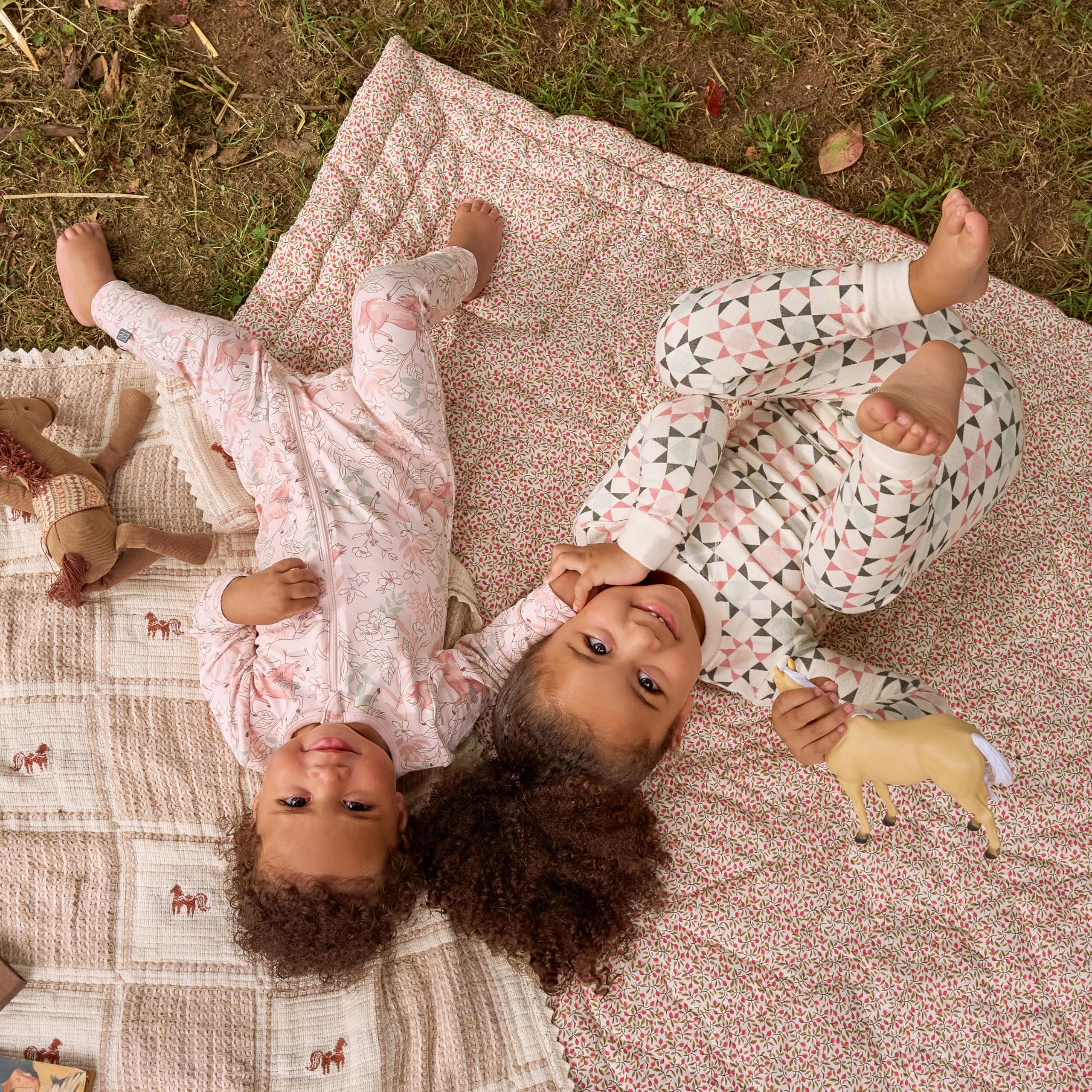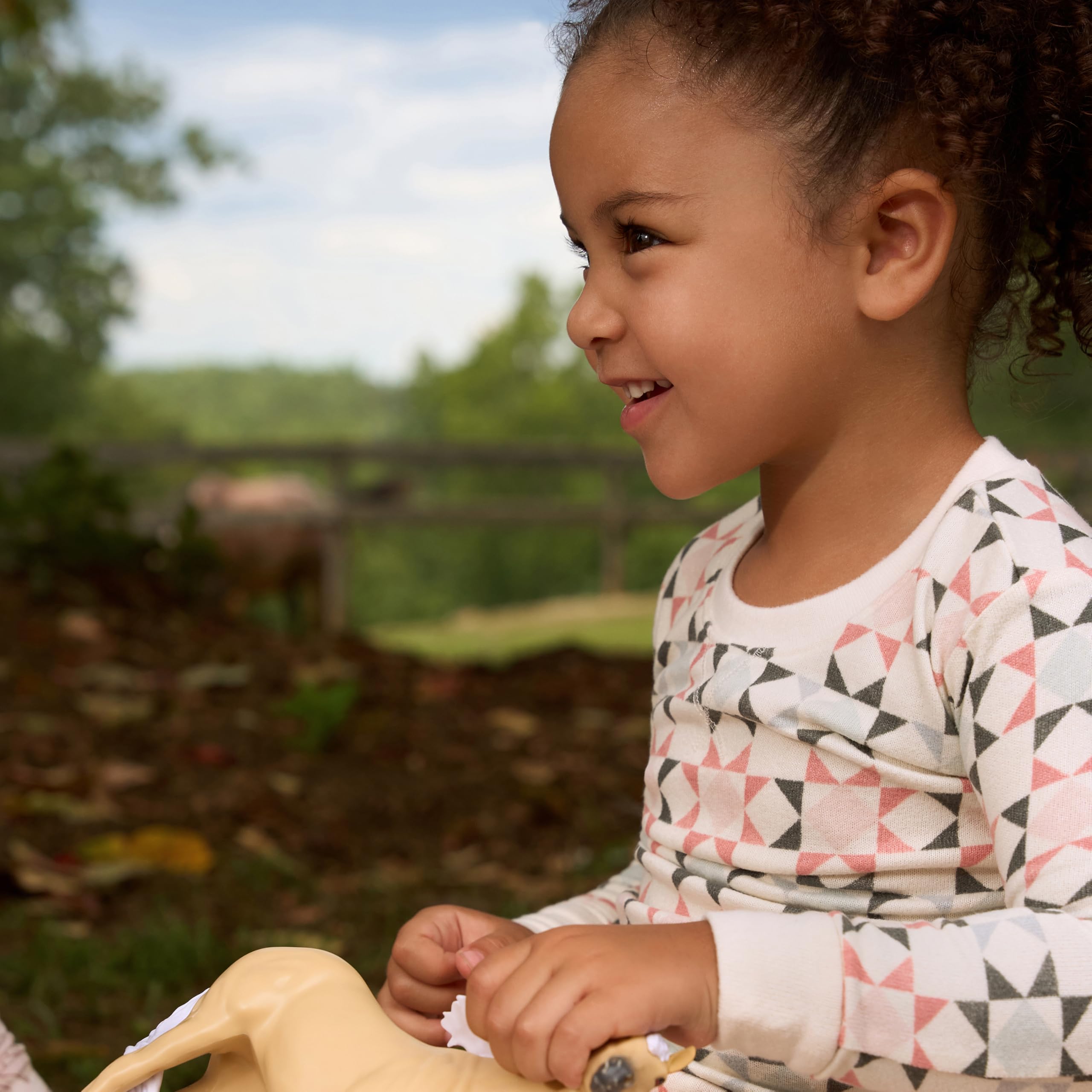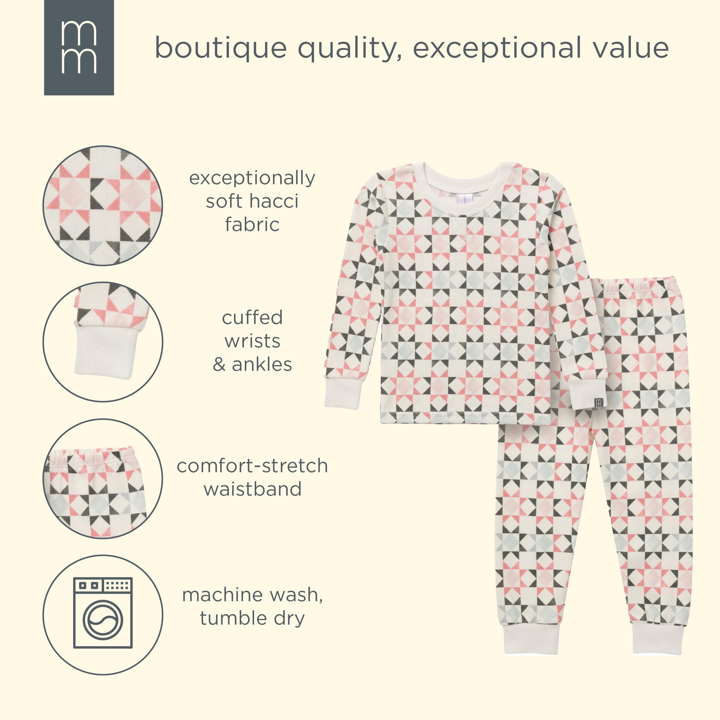 Description Add a pop of playful pattern to your little oneβs sleepwear rotation with this cozy snug-fit pajama set. The off-white base is brightened by a soft checker print in pink and blue, making it a cheerful favorite for bedtime. Made from ultra-soft, stretchy hacci jersey knit, the fabric is designed to keep little ones comfortable through the night. Cinched wrists and ankles help the set stay in place, while the comfort-stretch waistband allows for easy movement and dressing. Safe and snug-fitting by design, this pajama set brings both fun and function to cooler nights.