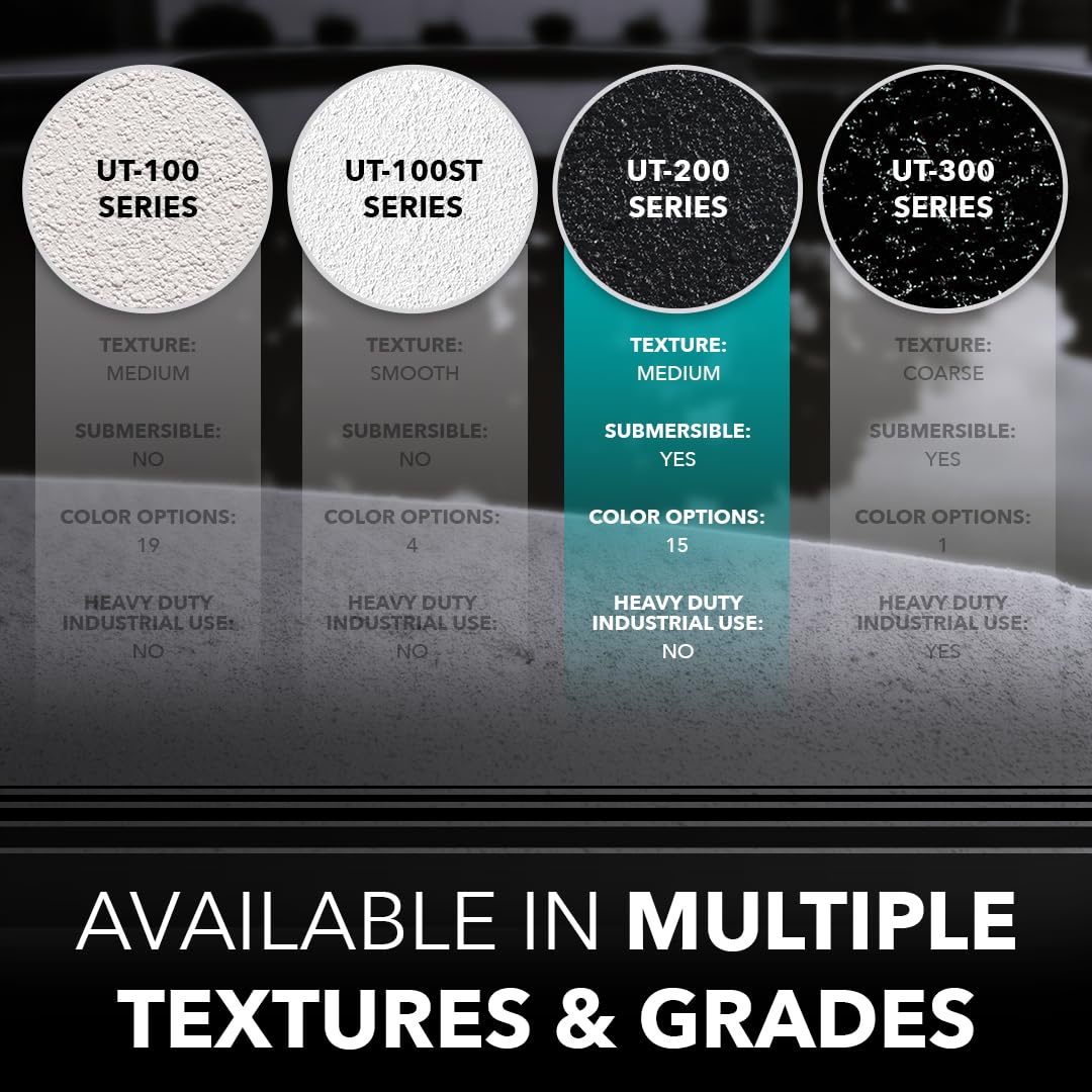 SUBMERSIBLE MEDIUM TEXTURE: Tuff Coat UT-200 series is a single component, flexible, water-based non-skid coating created through a unique process of cross-linking urethanes, acrylics, co-polymers and recycled rubber granules to create a long-lasting non-slip finish.