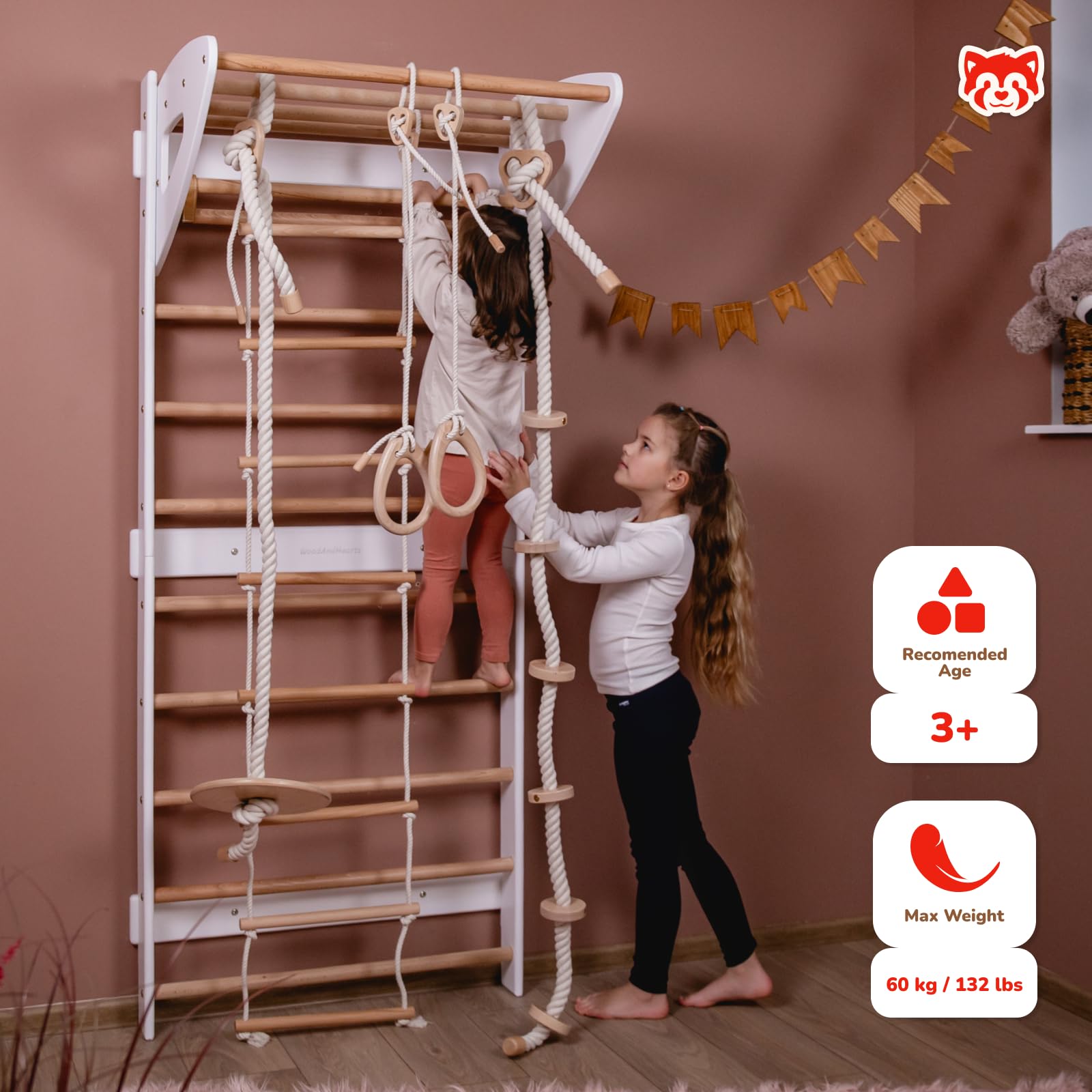 The Swedish ladder wall gym combines an indoor climbing gym and a climbing wall for kids indoor, encouraging physical activity and creativity. Perfect for any indoor gym for kids, providing hours of fun and fitness.