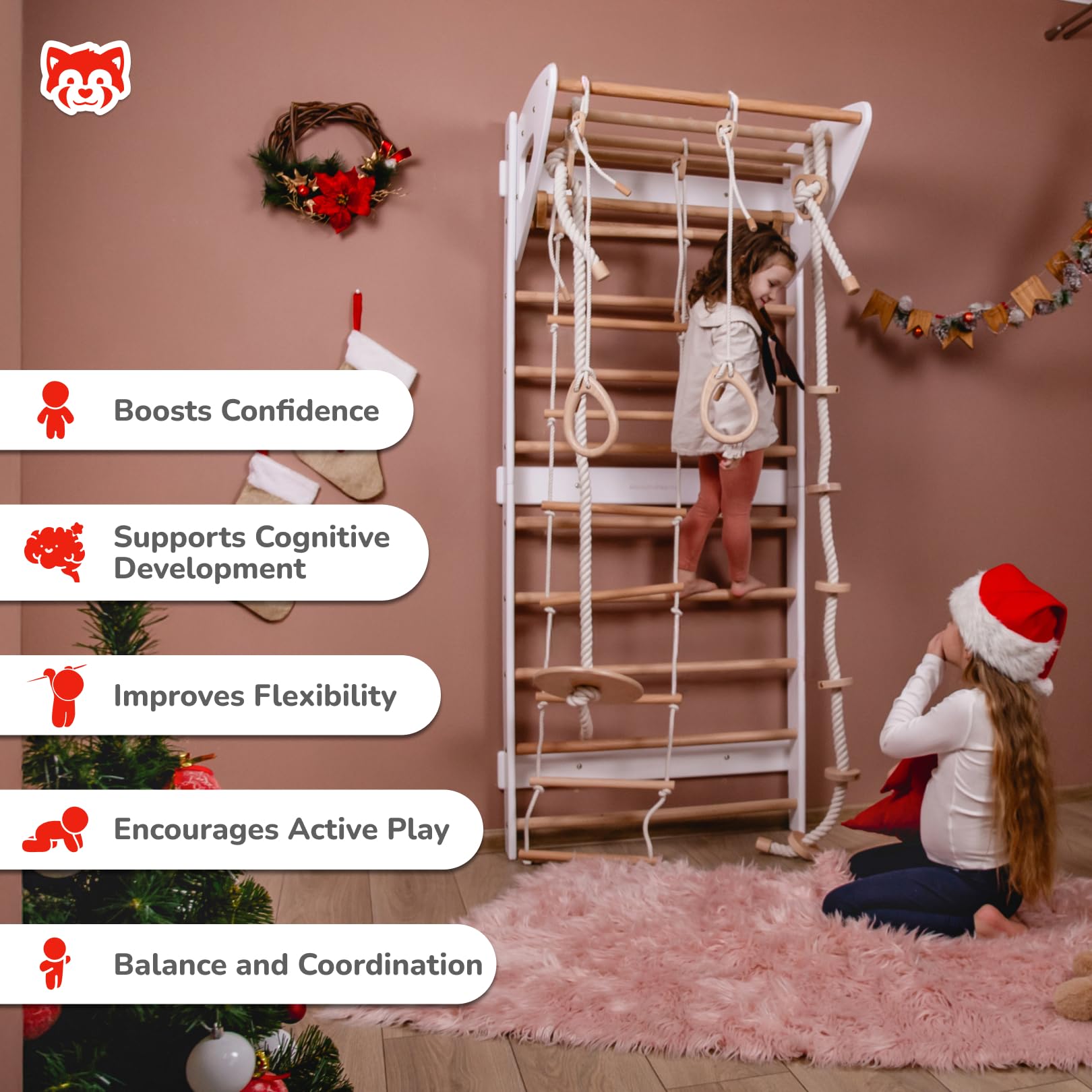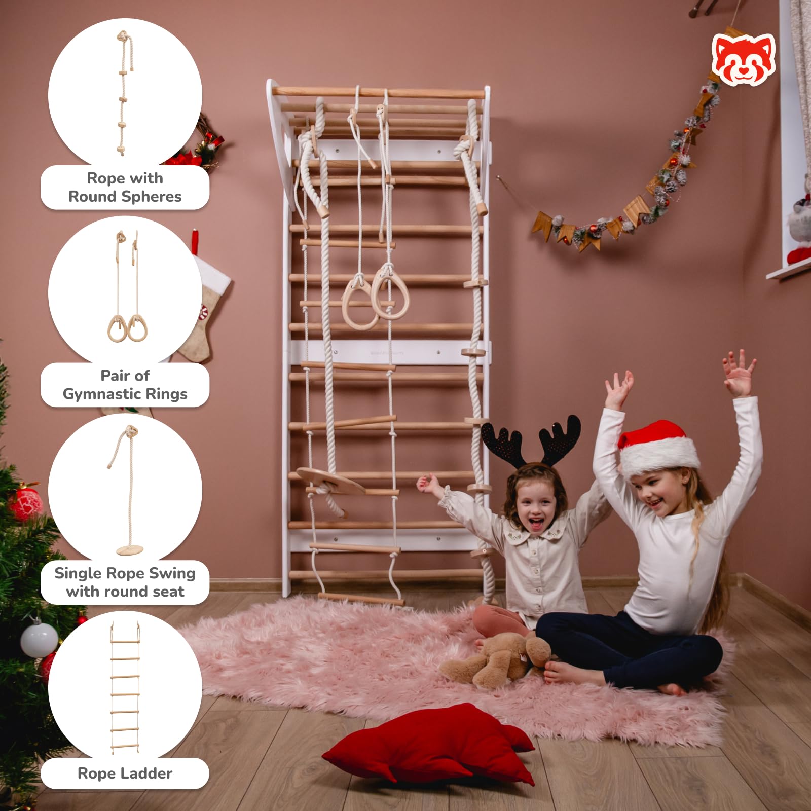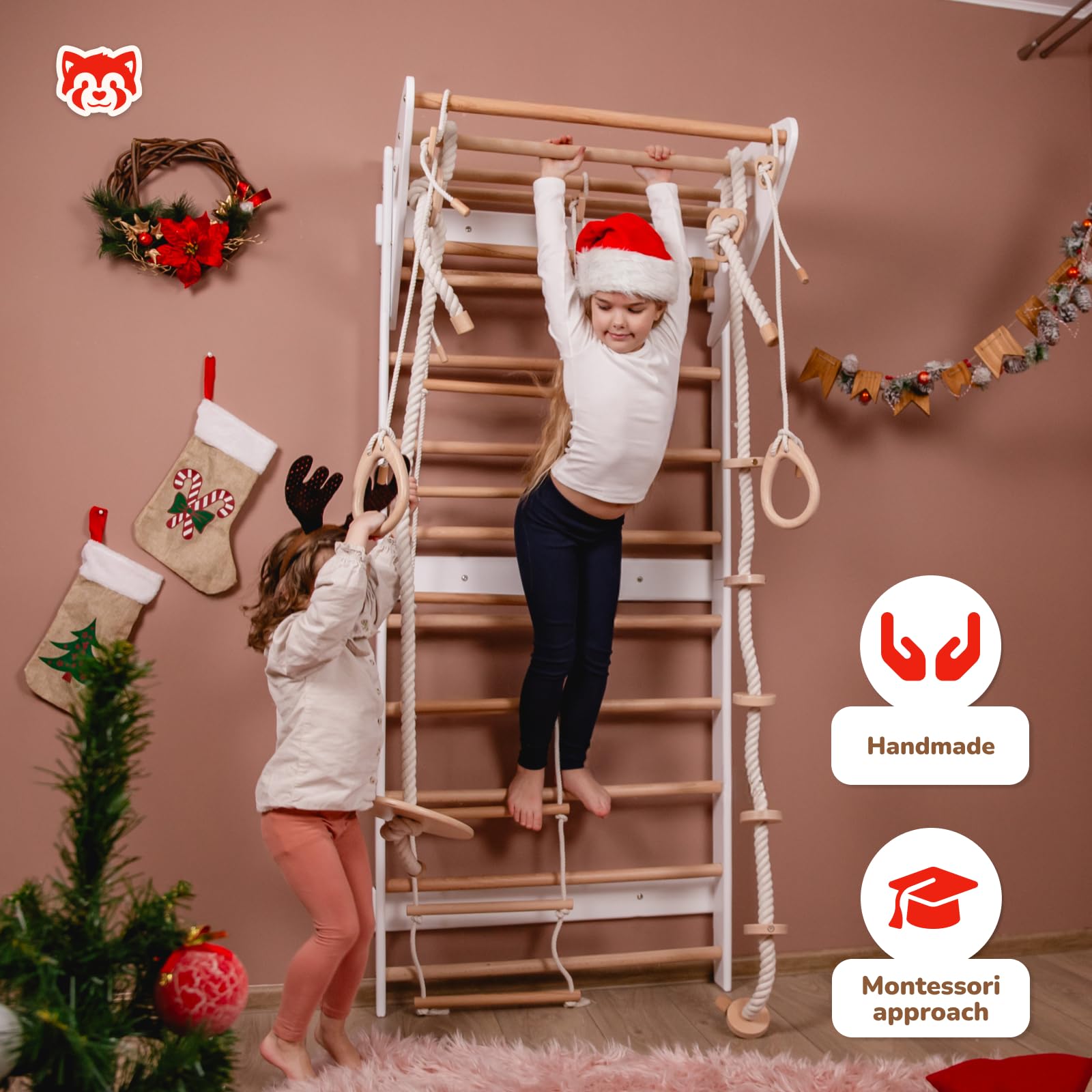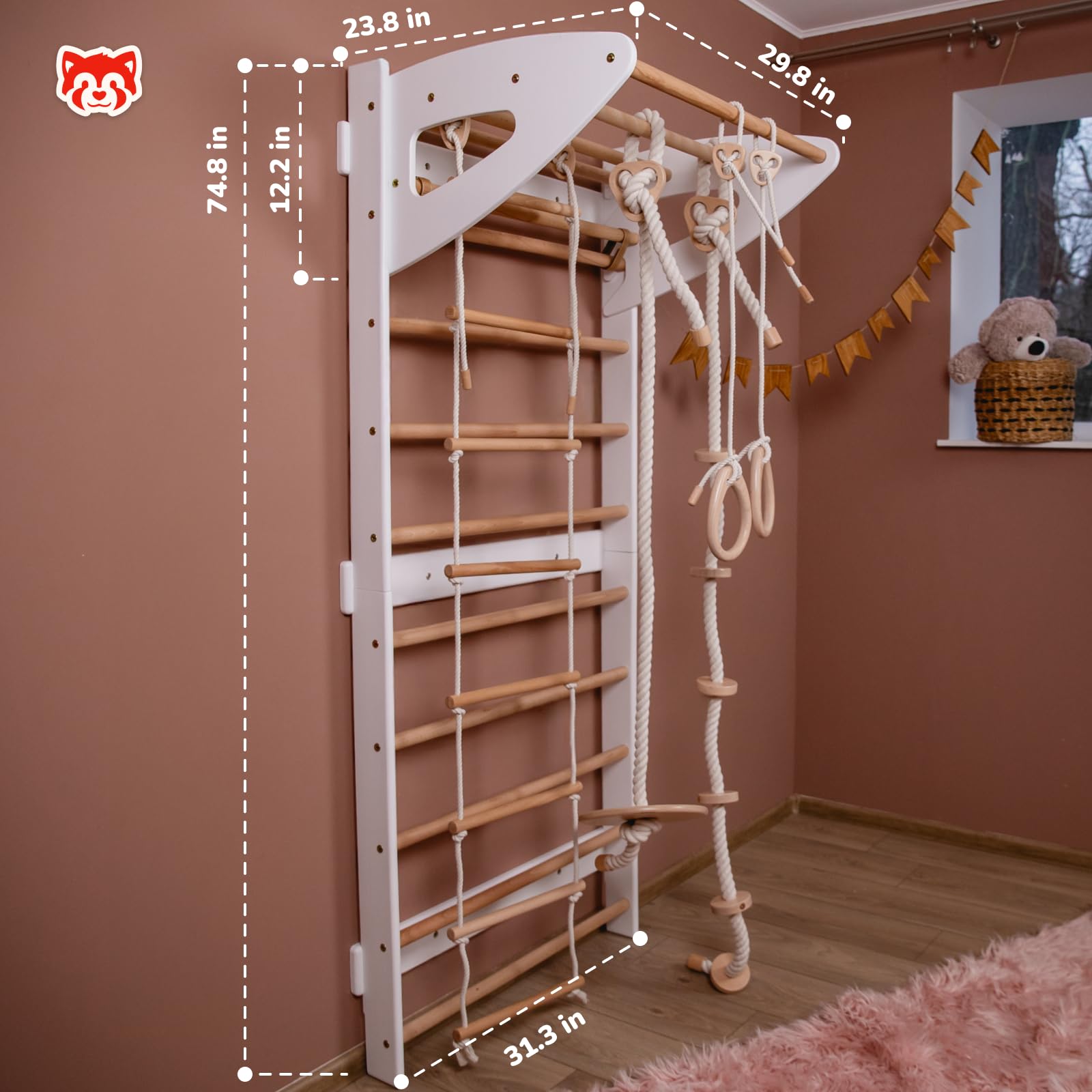 The versatile kids jungle gym includes a Swedish ladder, climbing wall, and more, making it ideal for active children. It's a great addition to any kids indoor climbing gym, offering both fun and fitness for growing kids.