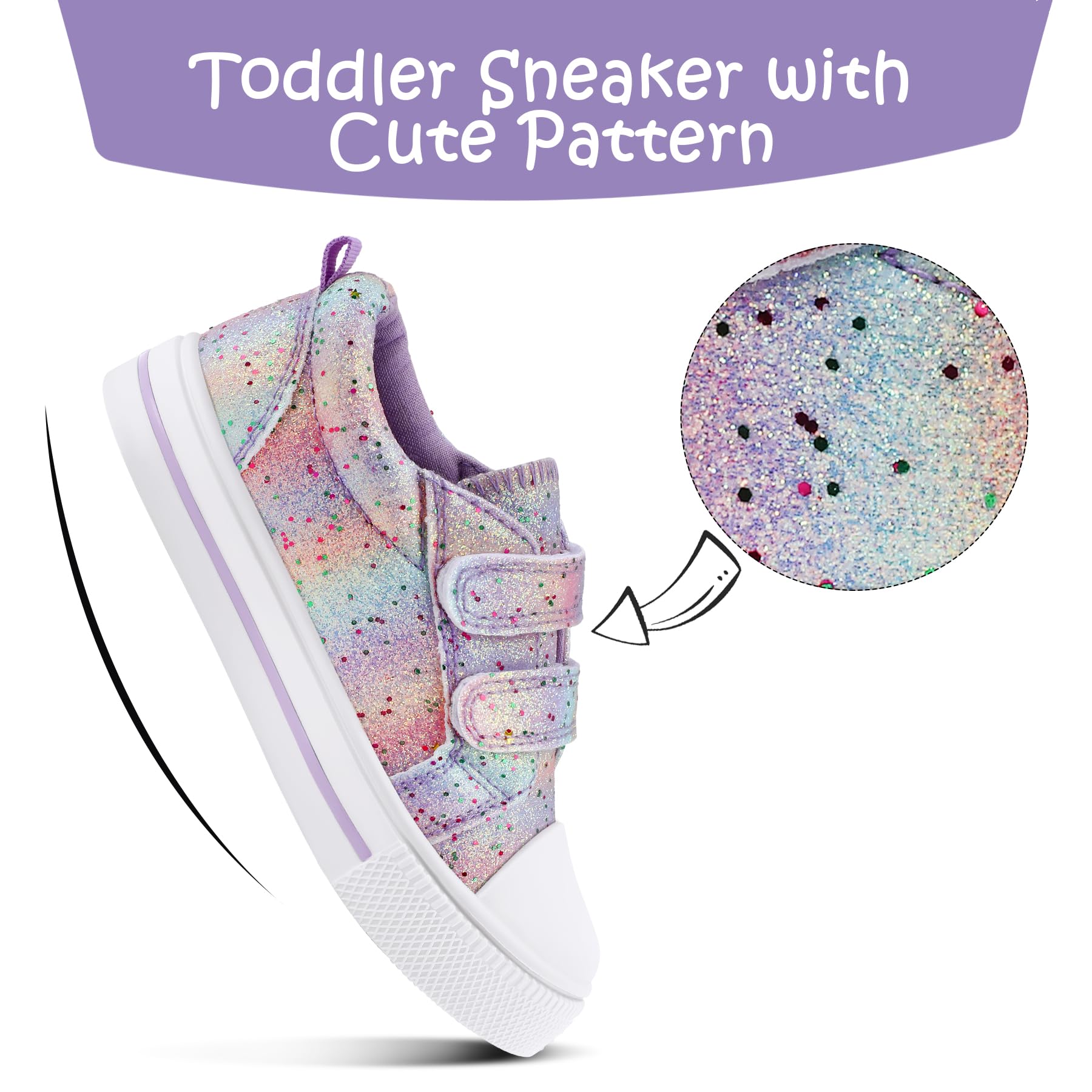Cozy and Safe Materials: Our toddler girl sneakers feature skin-friendly canvas uppers and a anti-collision toe cap to protect little toes