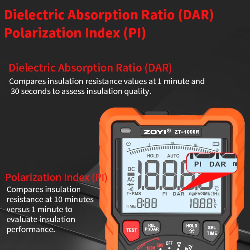 【Professional-Grade 2-in-1 Electrical Tester: Multimeter & Megohmmeter】ZT-1000R is a device with both a high-precision digital multimeter and a professional insulation resistance tester (megohmmeter). If you need to measure current and voltage or detect leakage, with this multimeter you don't need to carry multiple devices, it dramatically improves your work efficiency, is the ideal tool for electricians, engineers, maintenance technicians.