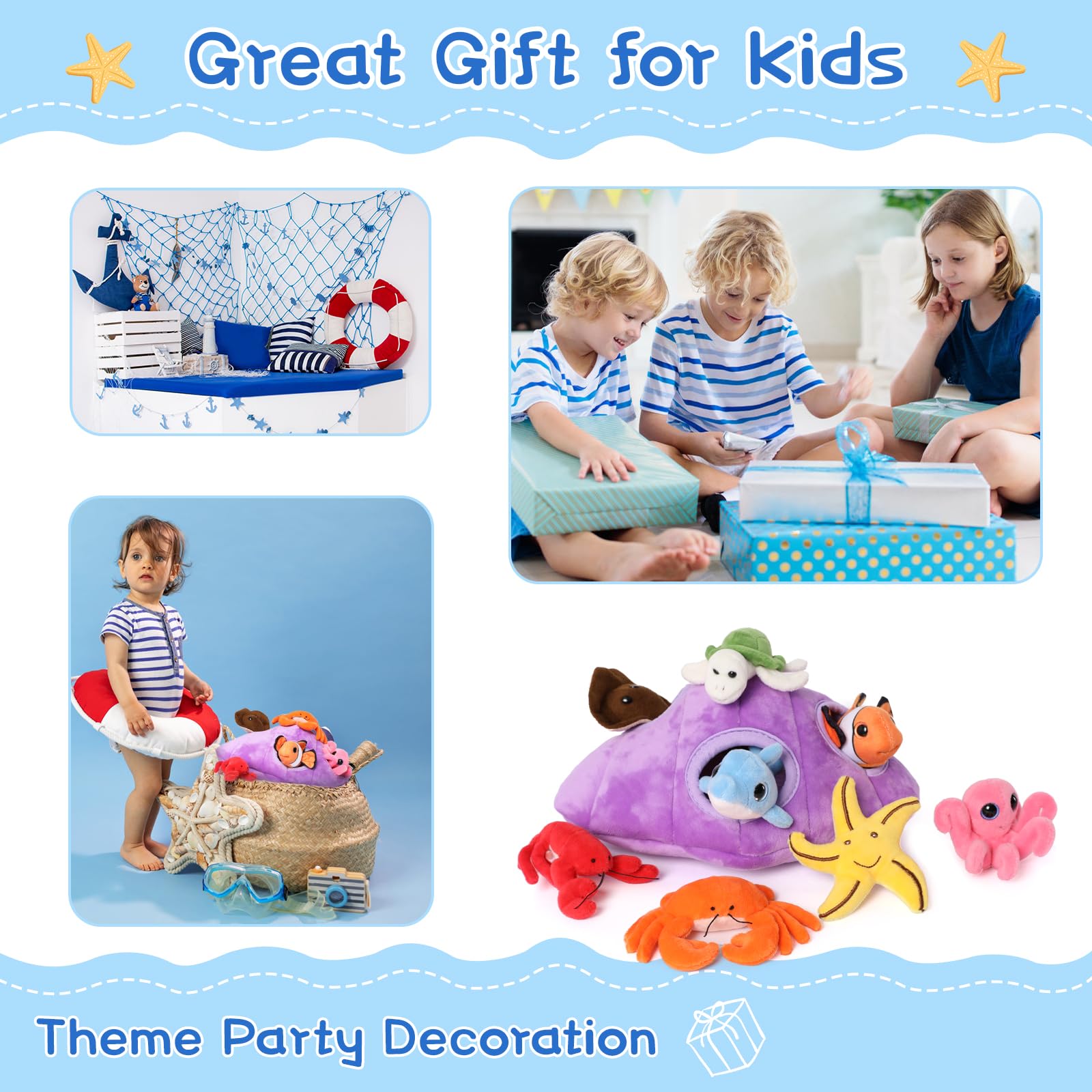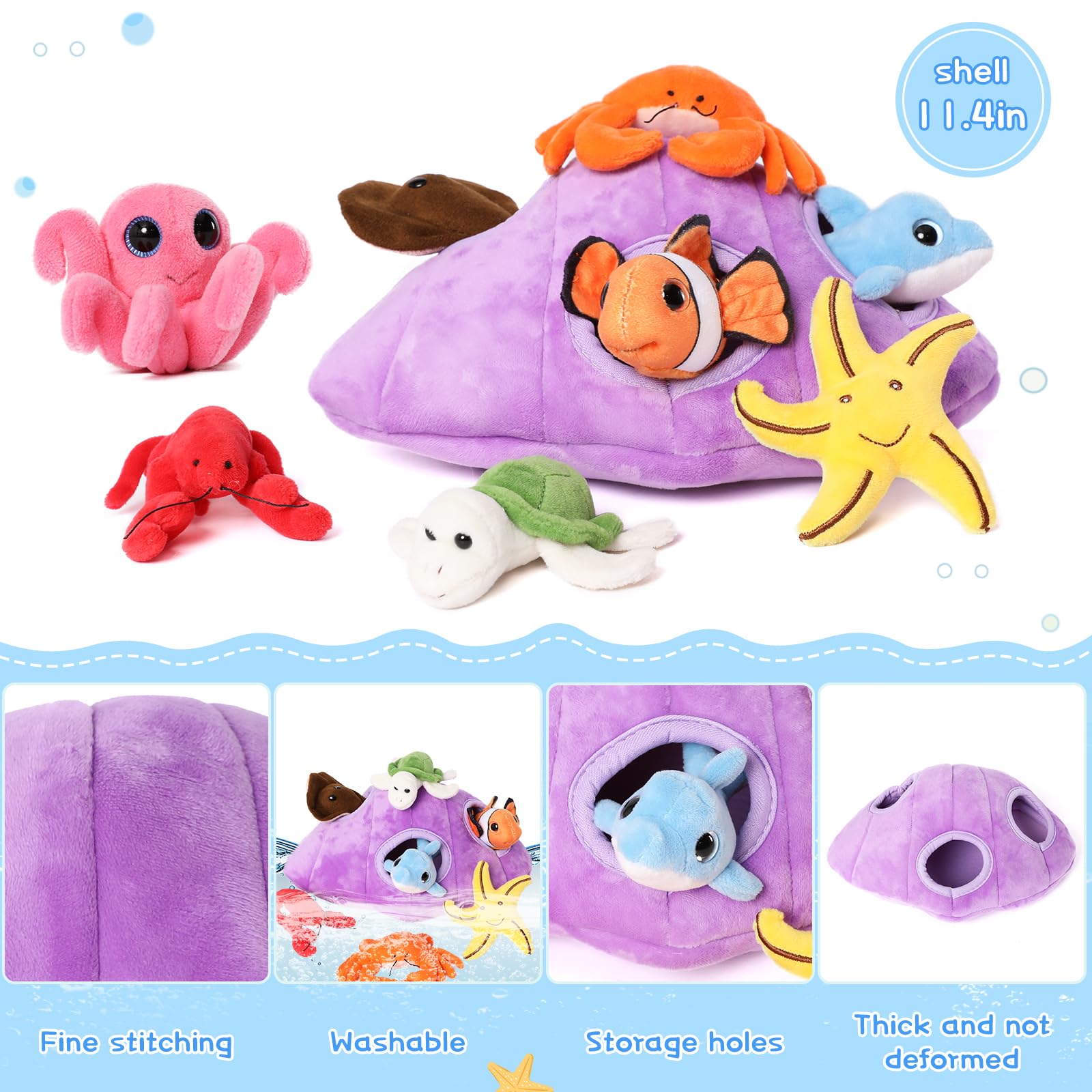 Muiteiur Ocean Sea Stuffed Animals Set,9 Piece Fun Seashell House Plush Set, Soft Educational Toy for Imaginative Play, for Kids Babies