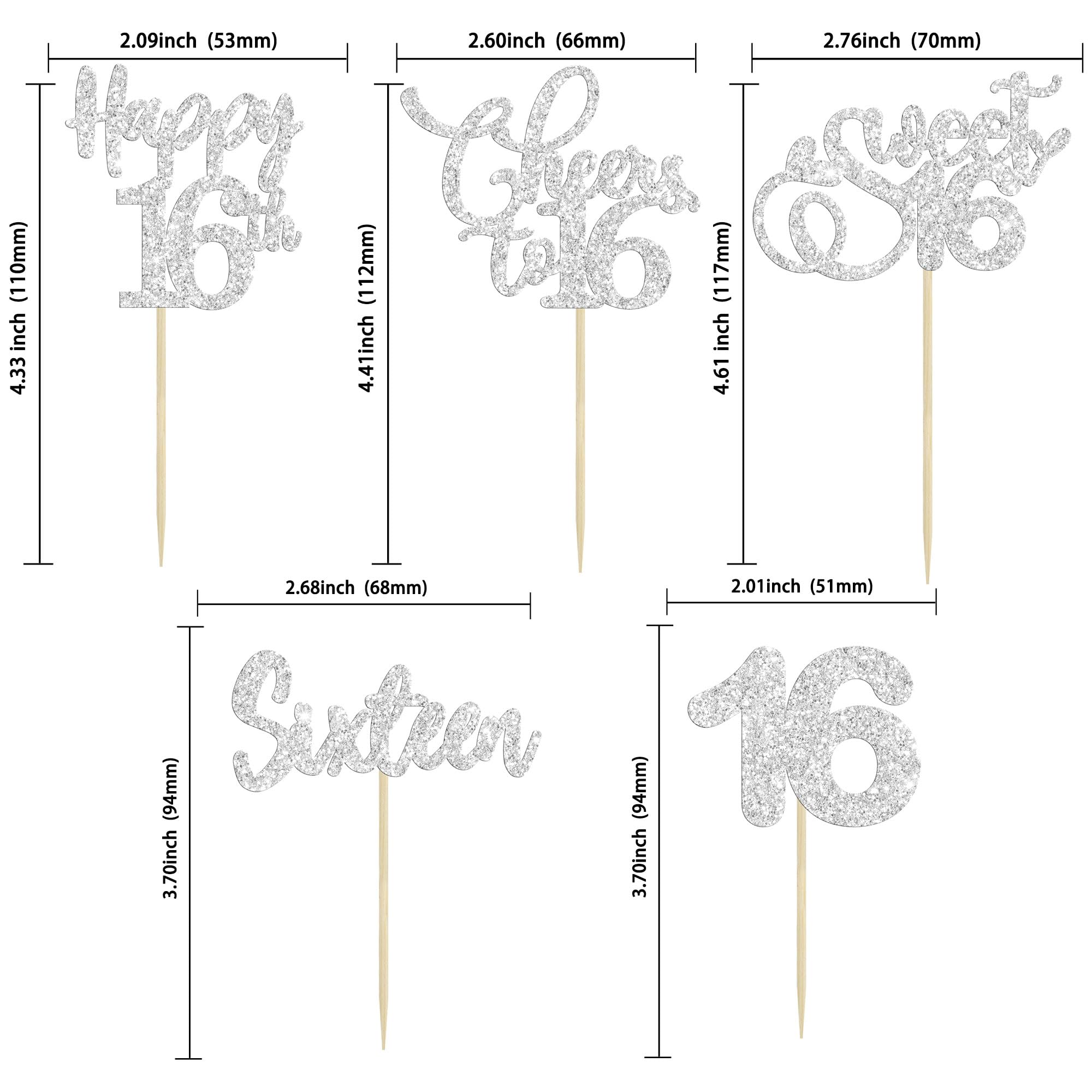 Material and Usage - Usage: They are perfect for 16th theme birthday party, 16th birthday wedding anniversary party, 16th birthday party cupcake decorations, which make the cupcake look tastier and more attractive. - Material: Made of paper material, solid, not easy to deform and fade and can reuse for many times; Please don't put them into oven for they are only decorative and not edible. Package and Size - Package: Pack of 30Pcs. Size: W 2.6"*H 4.3/W 6.5*H 11cm. You can insert into your cake directly, which make your cake more interesting. - If you want to return the item, please kindly contact us first, then we will deal with it until you are satisfied. Note 1.The cupcake topper picks have pointed end, please keep away from children when using. 2. These cupcake toppers are for decoration purposes only, not edible and do not place in oven or use for baking. 3. Due to the light and screen difference, the item's color may be slightly different from the pictures.