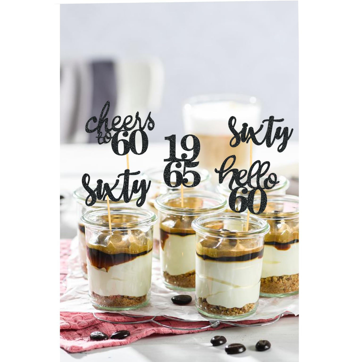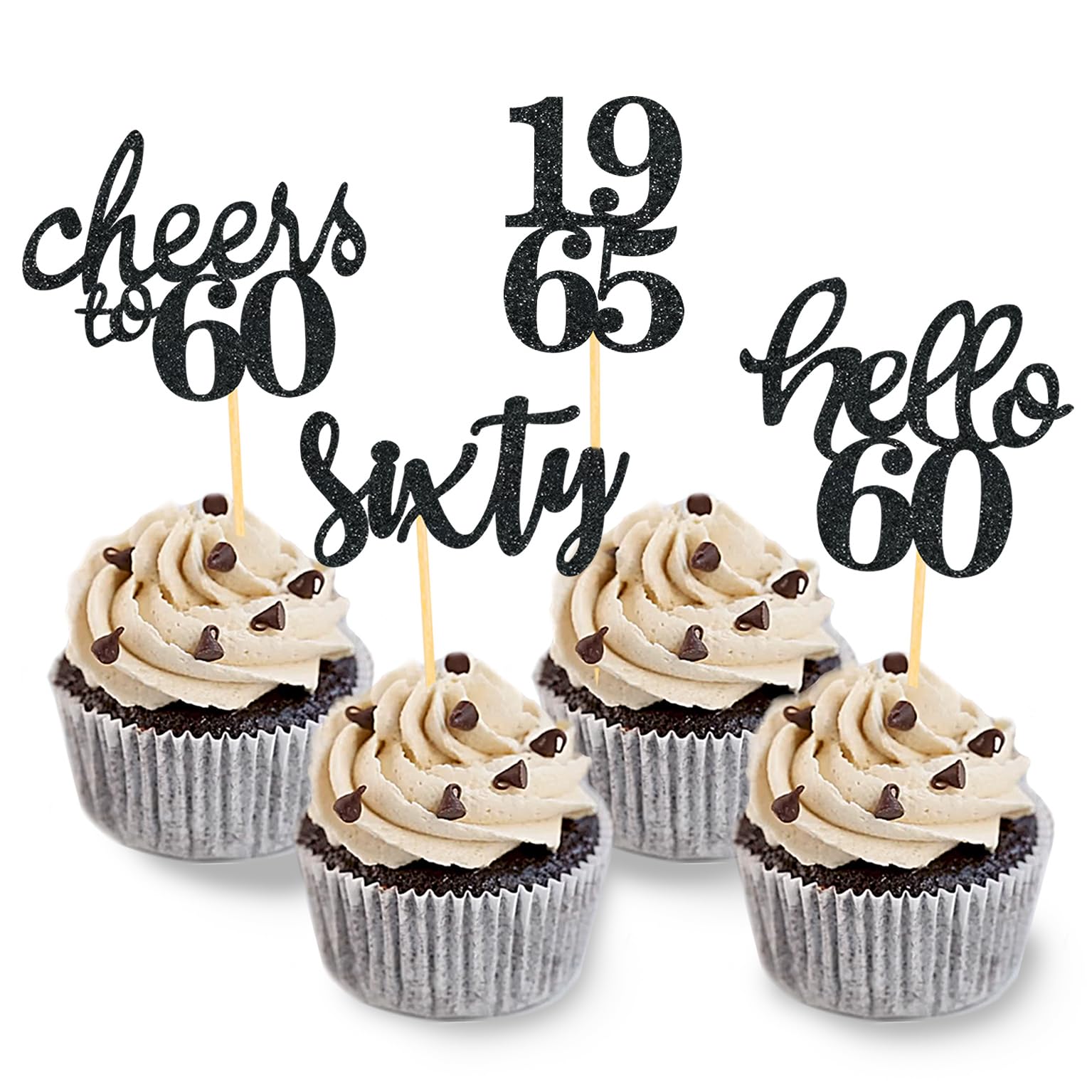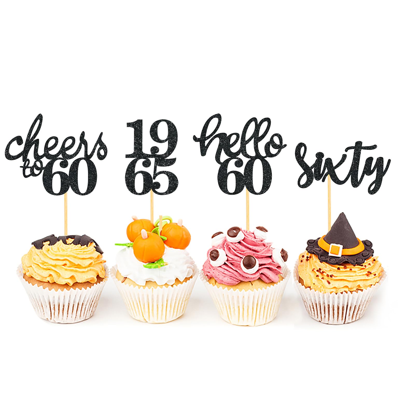 What you will get: 24pcs glittery cupcake toppers, these cupcake toppers is the perfect decoration welcome your friends to your 60th birthday party.