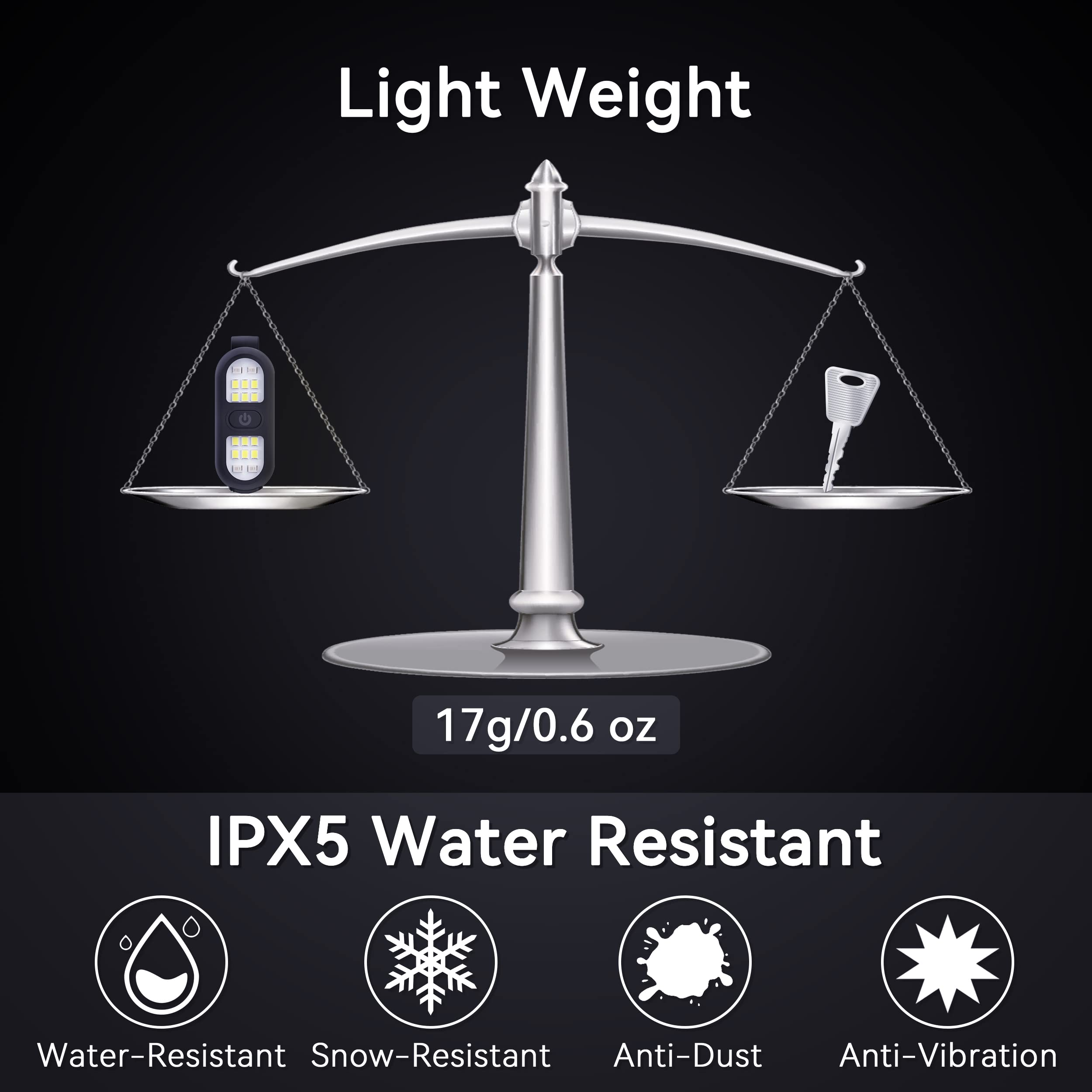 High Quality:IPX6 Waterproof Design make Clip on Light well protected against being sprayed by water from any angle even in the rain or snow.We offer 1 Year Warranty:We are confident with our product quality. Please get to us if there is anything you need.We are glad to fulfill your satisfaction.