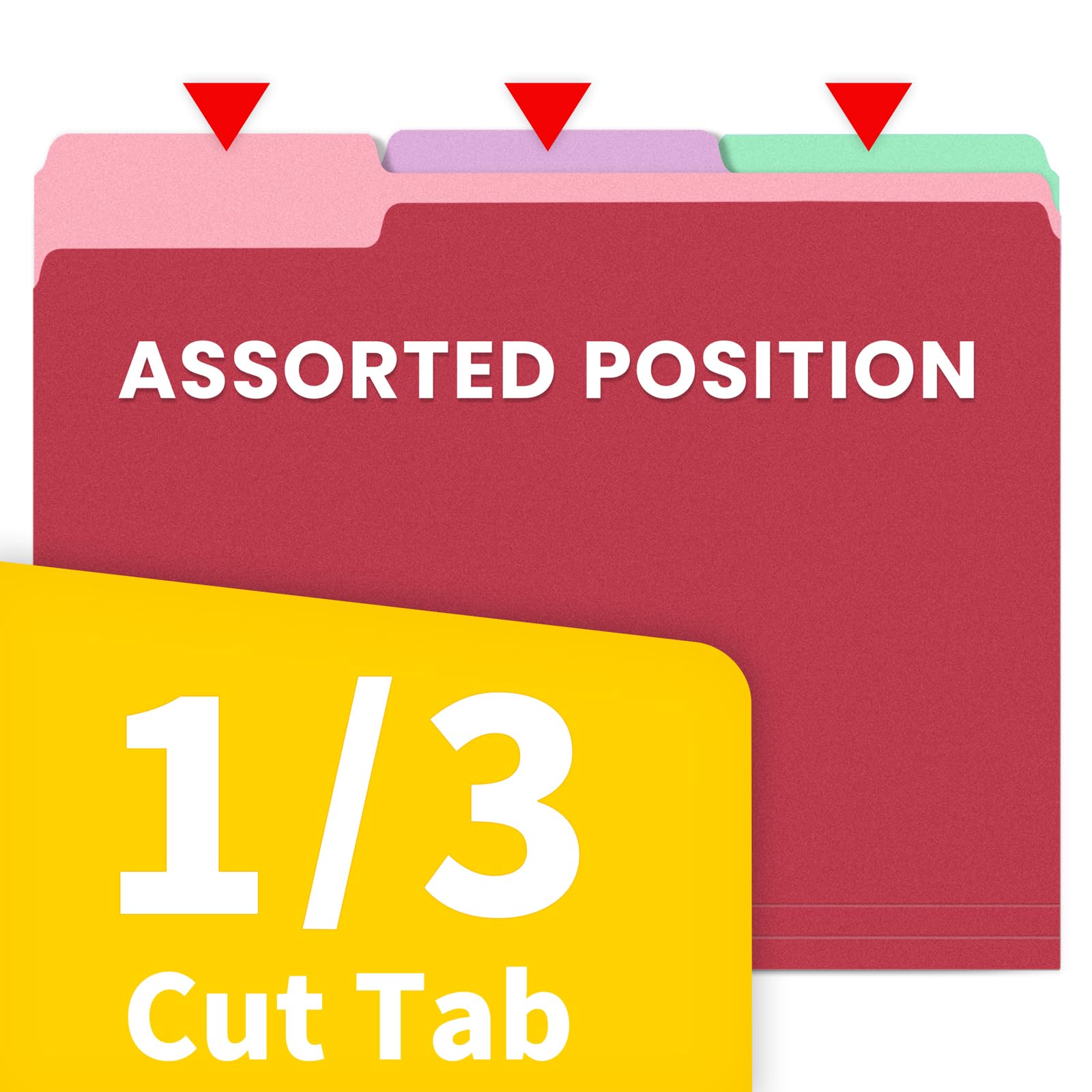 1/3 Cut Tab: Effortlessly navigate your files with the 1/3 cut file folder tabs design. This feature allows for clear labeling, making it simple to organize and access your documents efficiently. Keep your office tidy and organized with these easy-to-use folders.