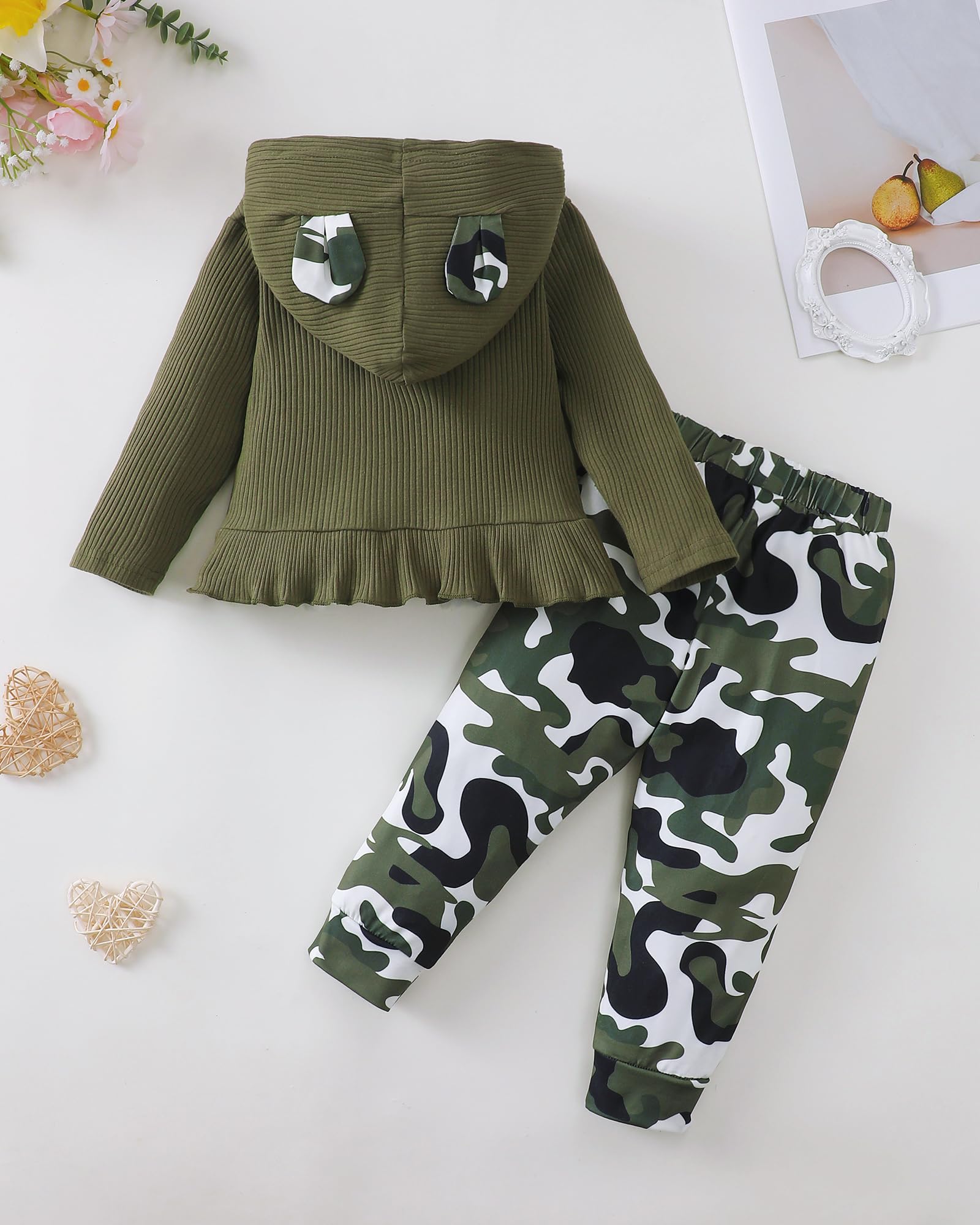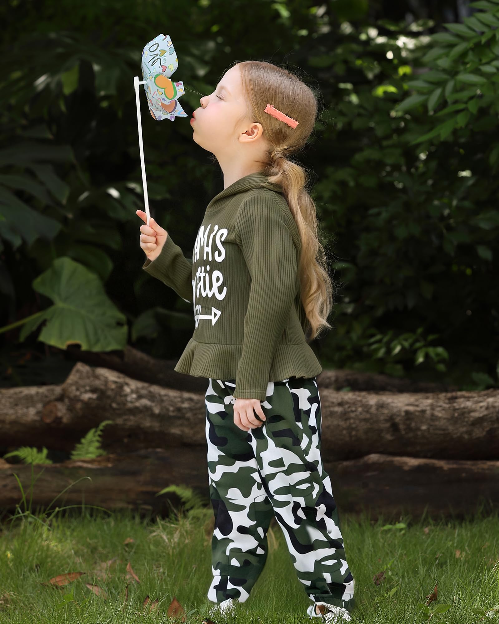 Designs: Baby girl 2 piece pant sets feature the ruffled shoulder, a headband and girls pant with pockets, pullover long sleeve shirts tops, solid color.