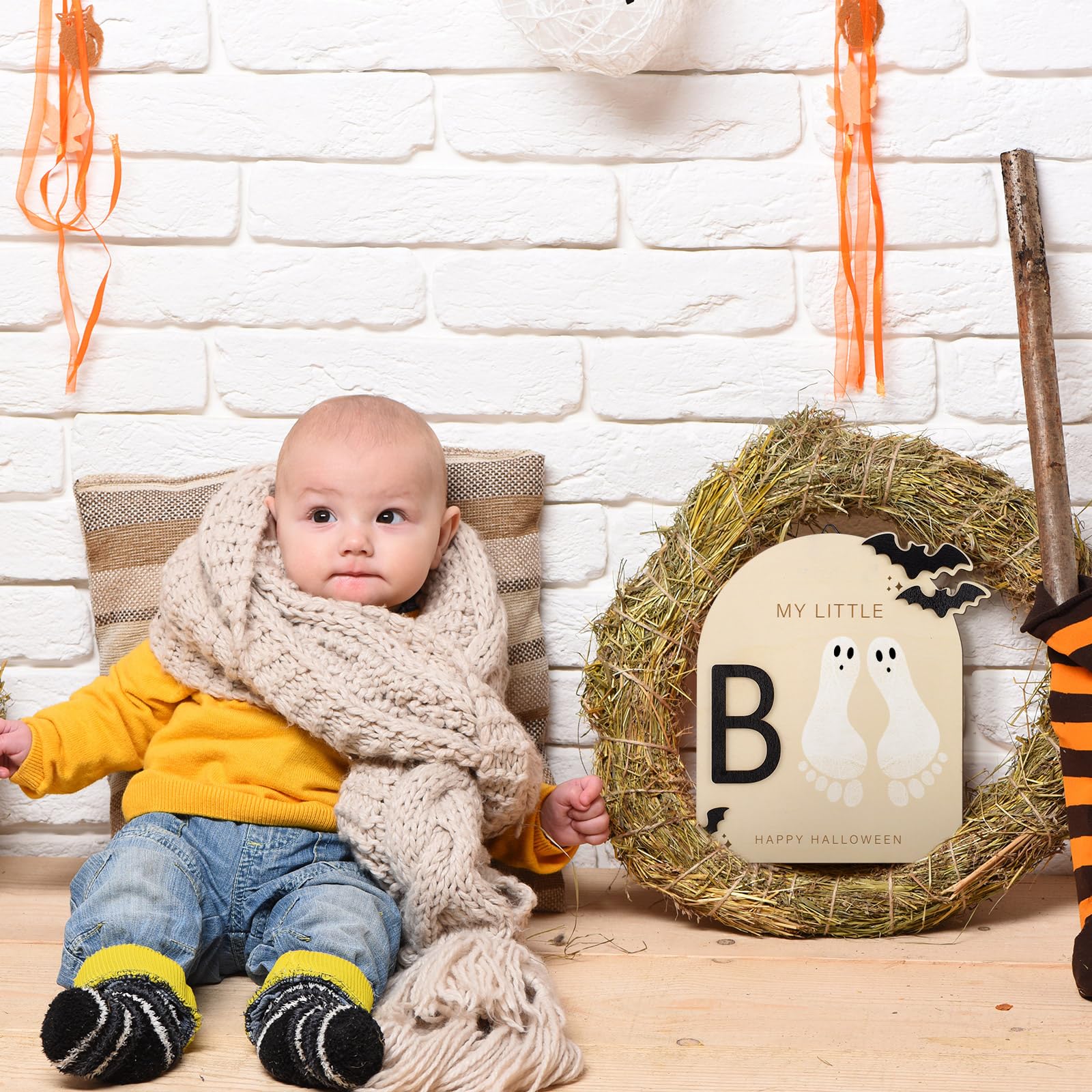 DIY Design: this wooden footprint sign brings a suitable and playful design to your Halloween seasonal decor, its DIY nature means you can personalize it with your child's footprints, making it more meaningful and personal, also can customize your name, date of birth and meaningful words, and record your baby's first Halloween handprints or footprints